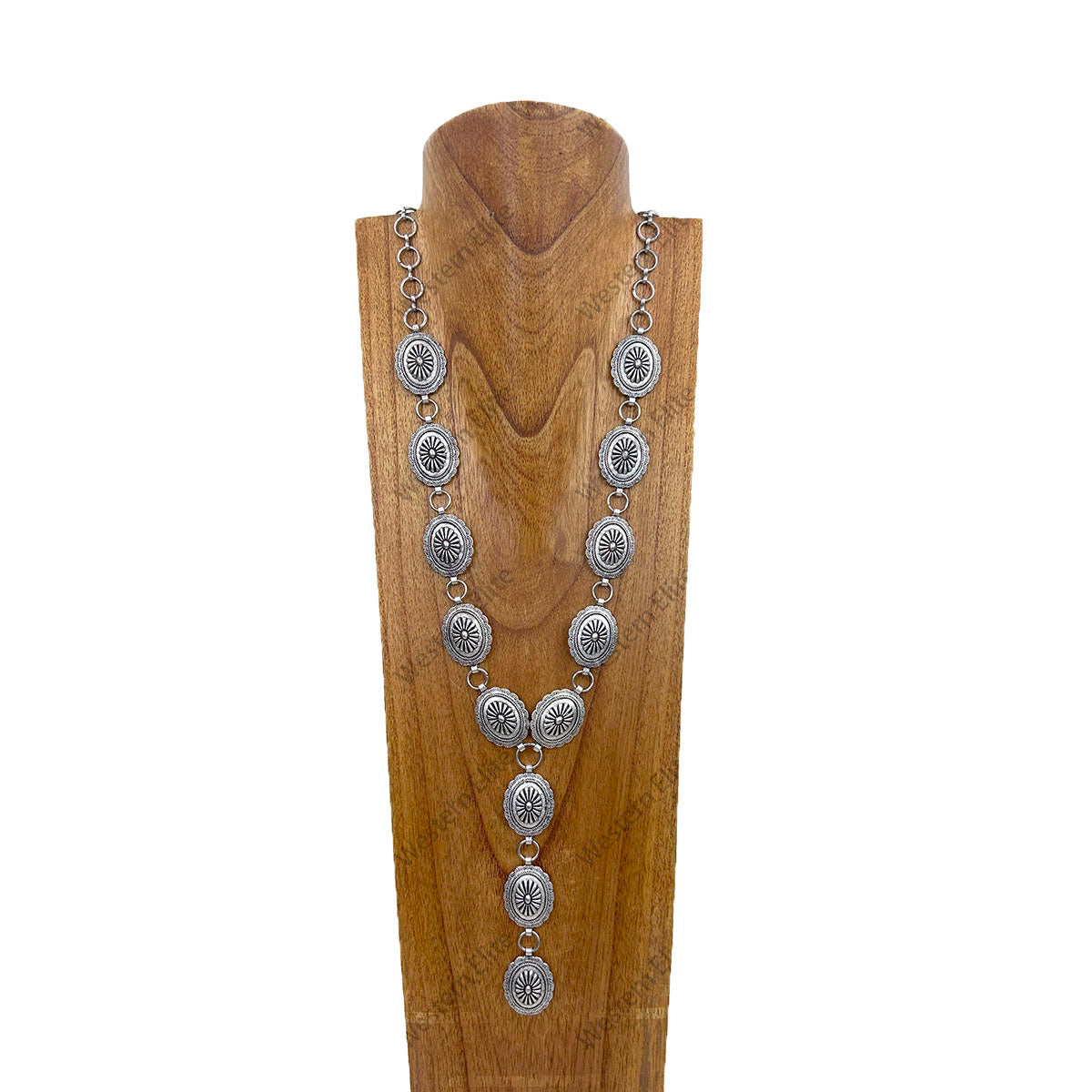 NKY250525-33 35'' Silver metal chain with oval metal flower Necklace