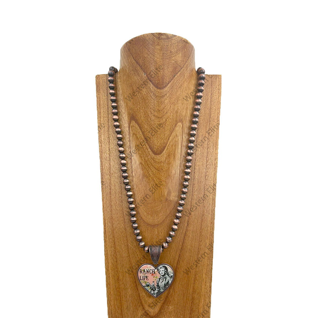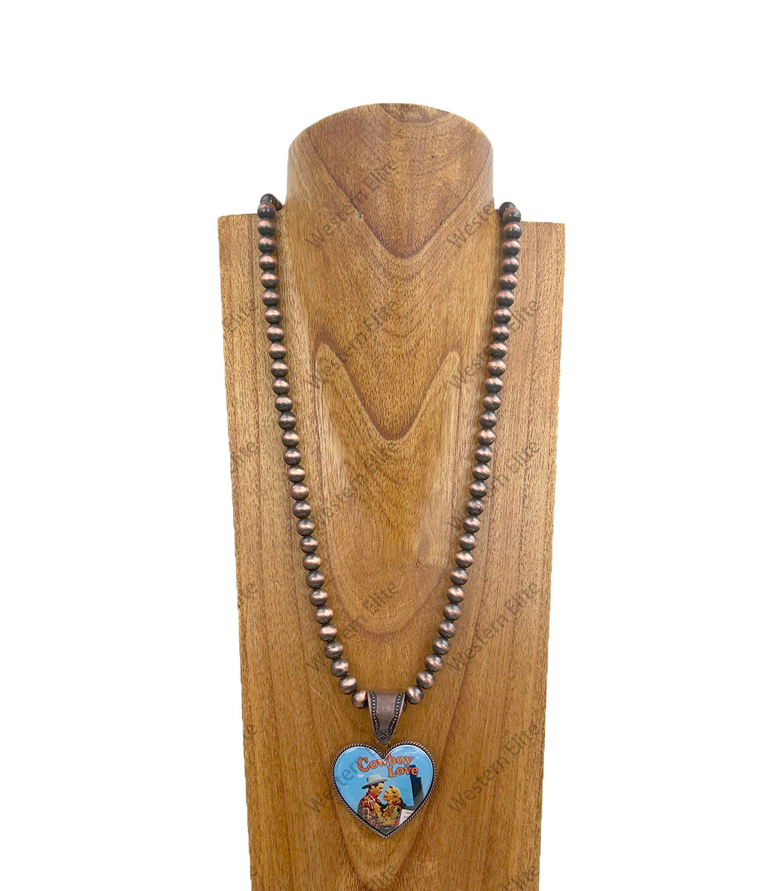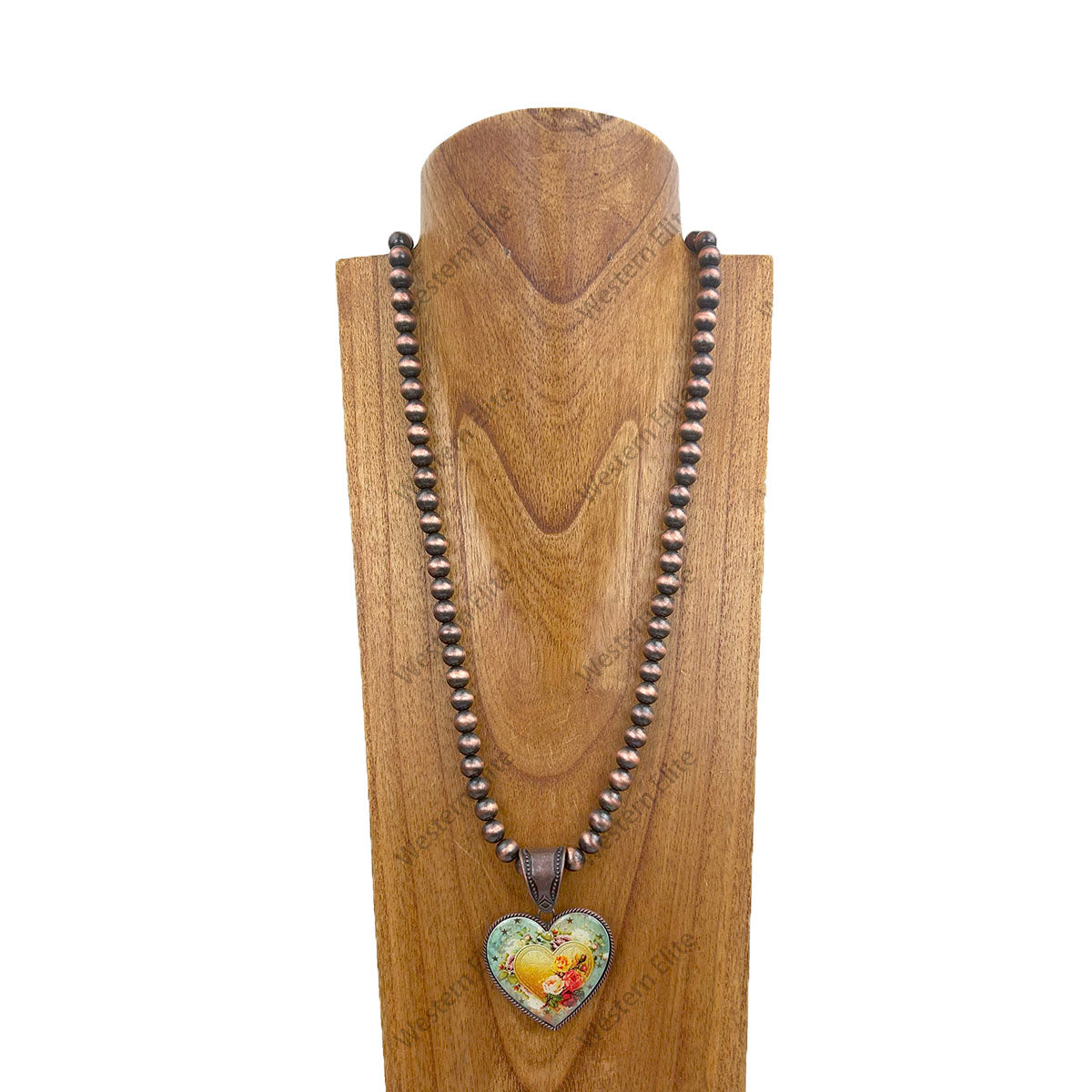 NKY250112-08 33 inches copper Navajo pearl beads with western heart pendent Necklace