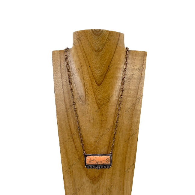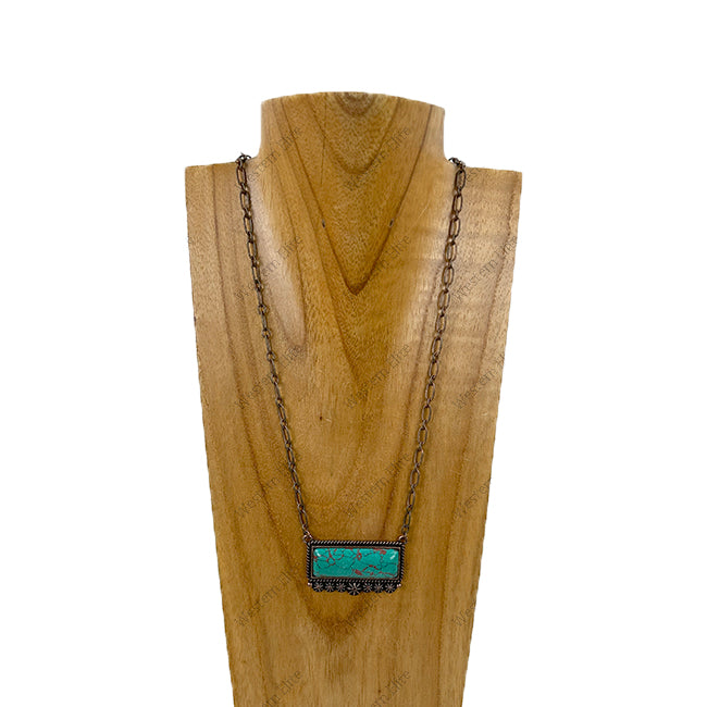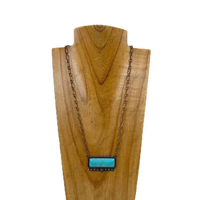 NKY220530-07CP-BLUE 22'' Copper metal chain with blue turquoise rectangle pendent Necklace