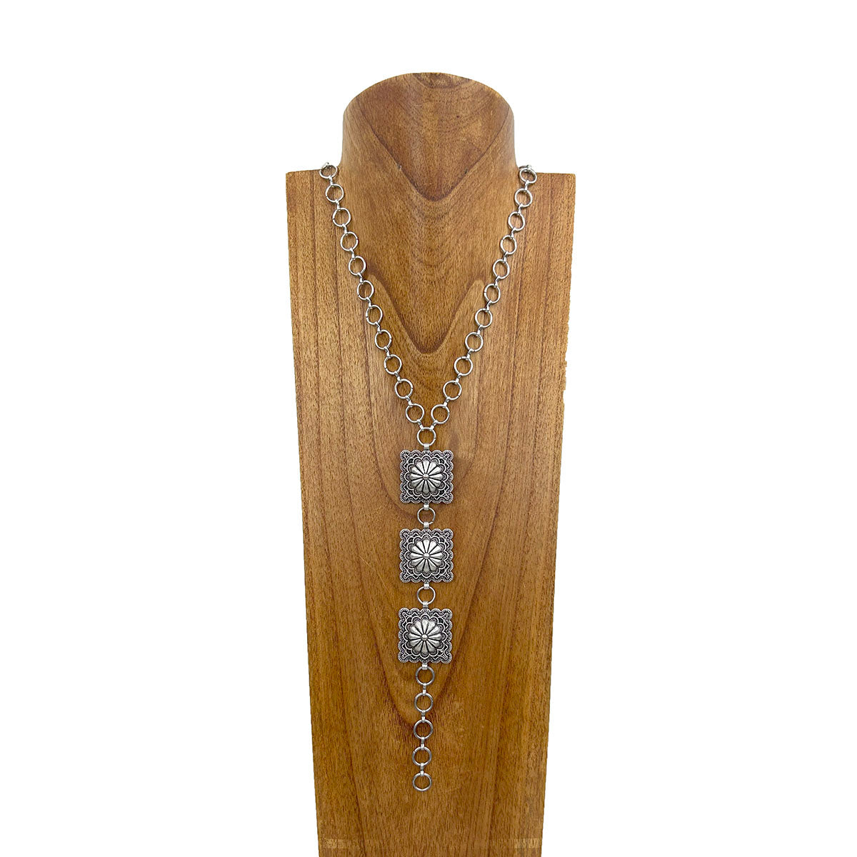 NKY250525-31 24'' Silver metal chain with square metal flower Necklace