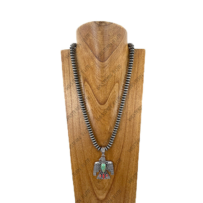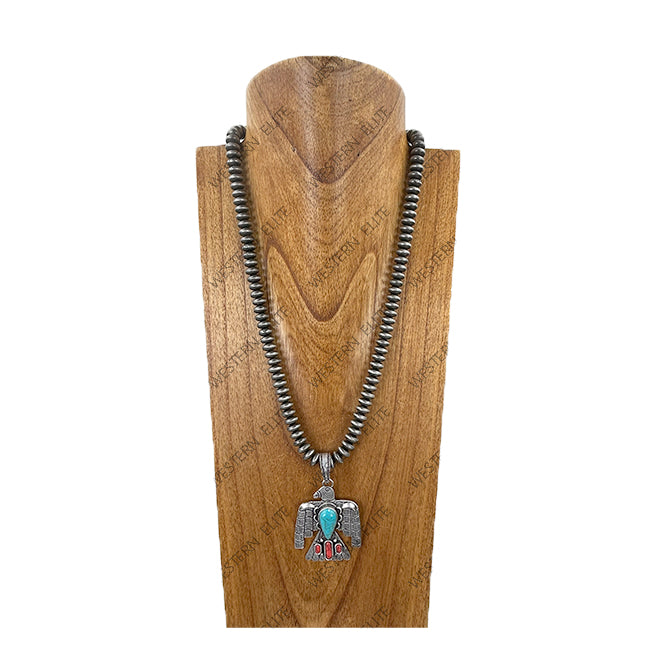 NKY260118-16 24'' 10mm Silver roundel Navajo pearl beads with metal eagle pendent Necklace