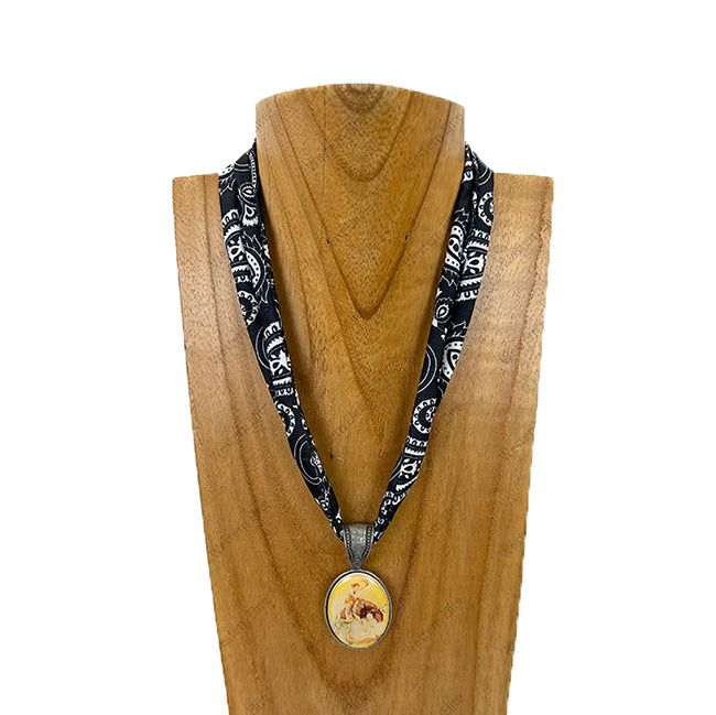 NKY260120-13 16'' Silk feeling scarf with oval western pendent Necklace