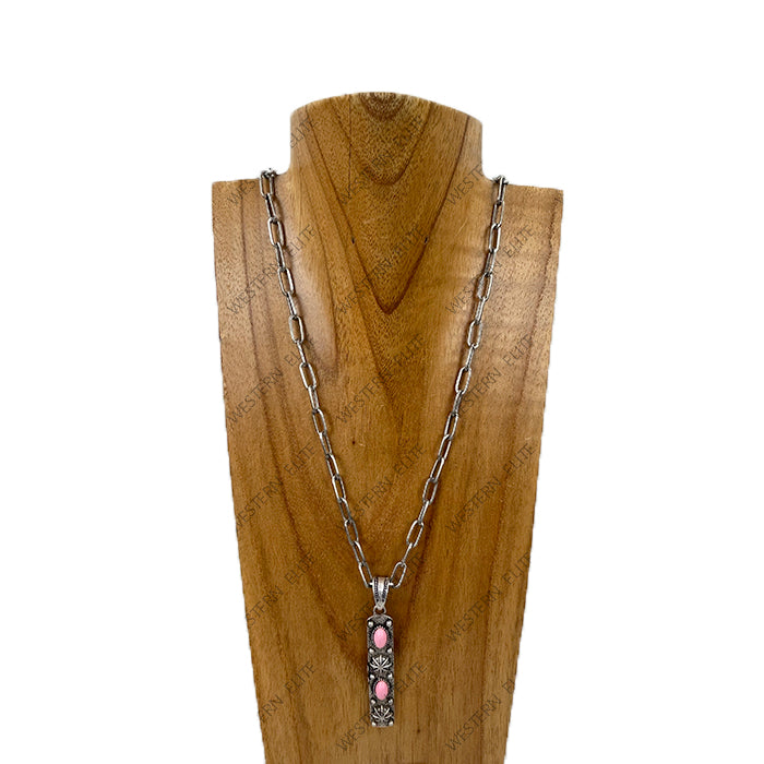 NKY230910-07-LIGHT PINK 21'' Inches silver metal chain with Light pink stone bar Necklace