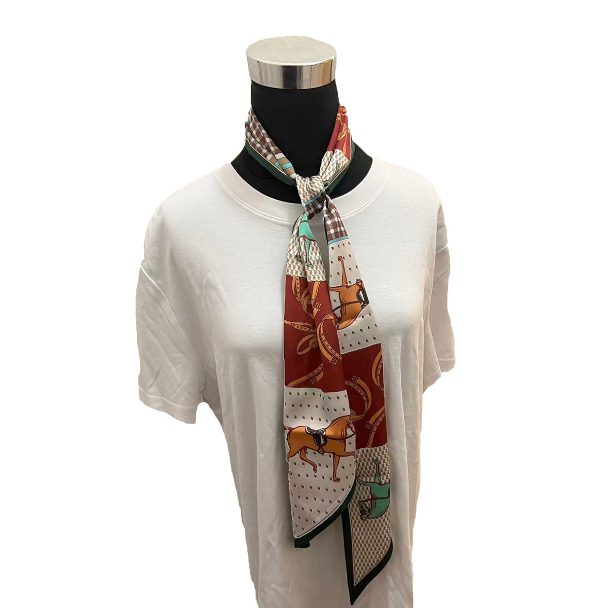 58'' L X 6'' W  Western Long scarf Silk feeling ; 100 % polyester ; hand washable