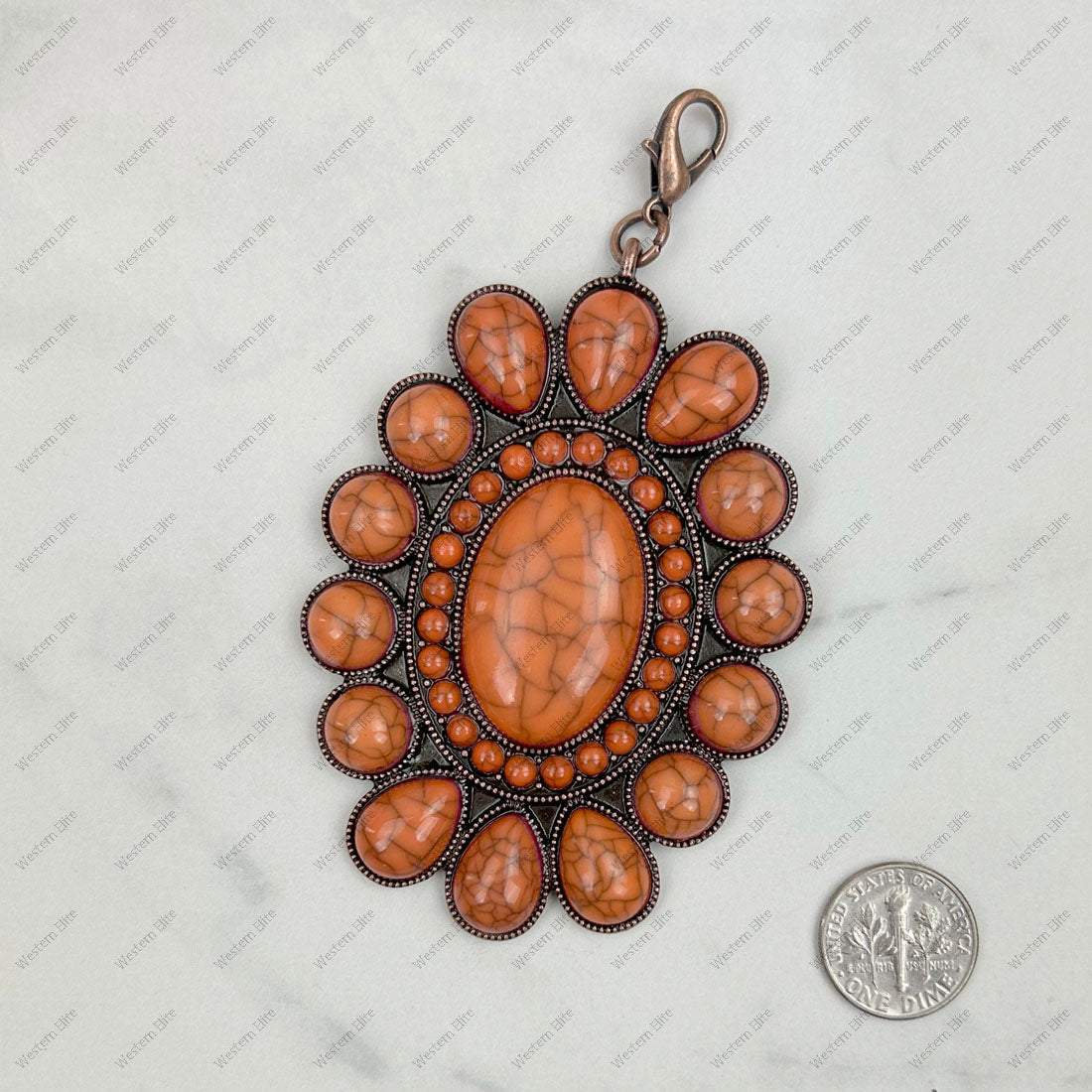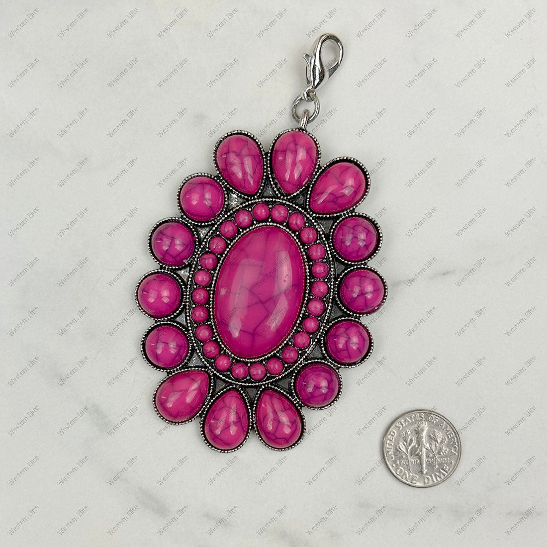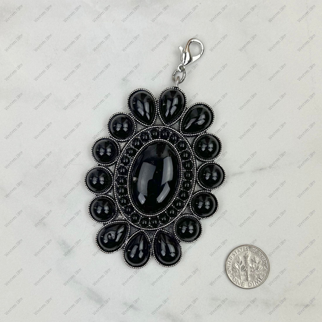 PDS180131-02-BLUE silver with blue turquoise stone oval concho pendent