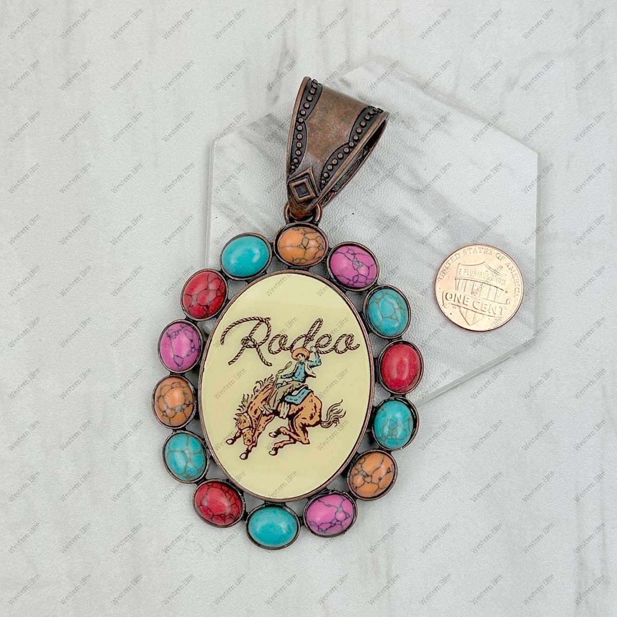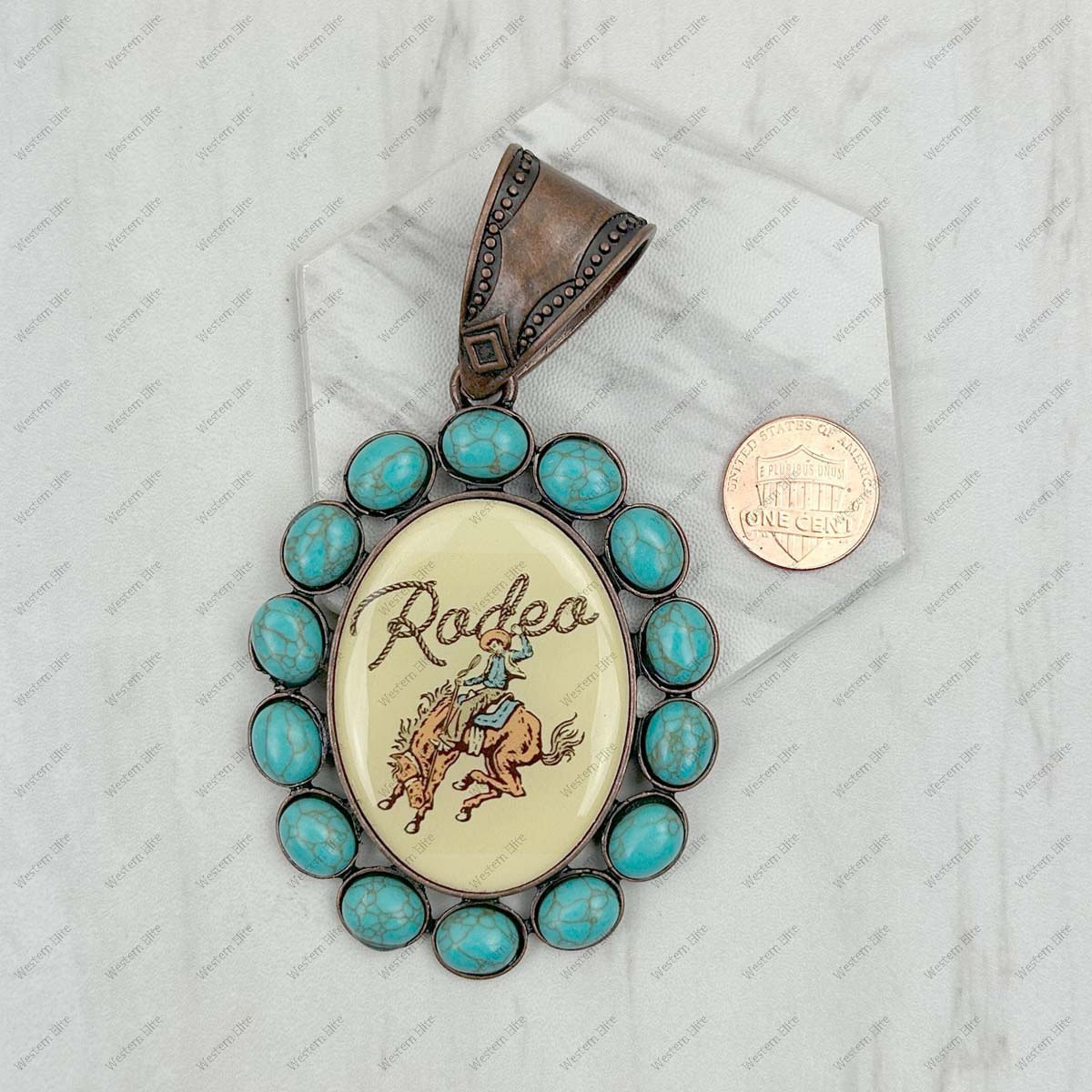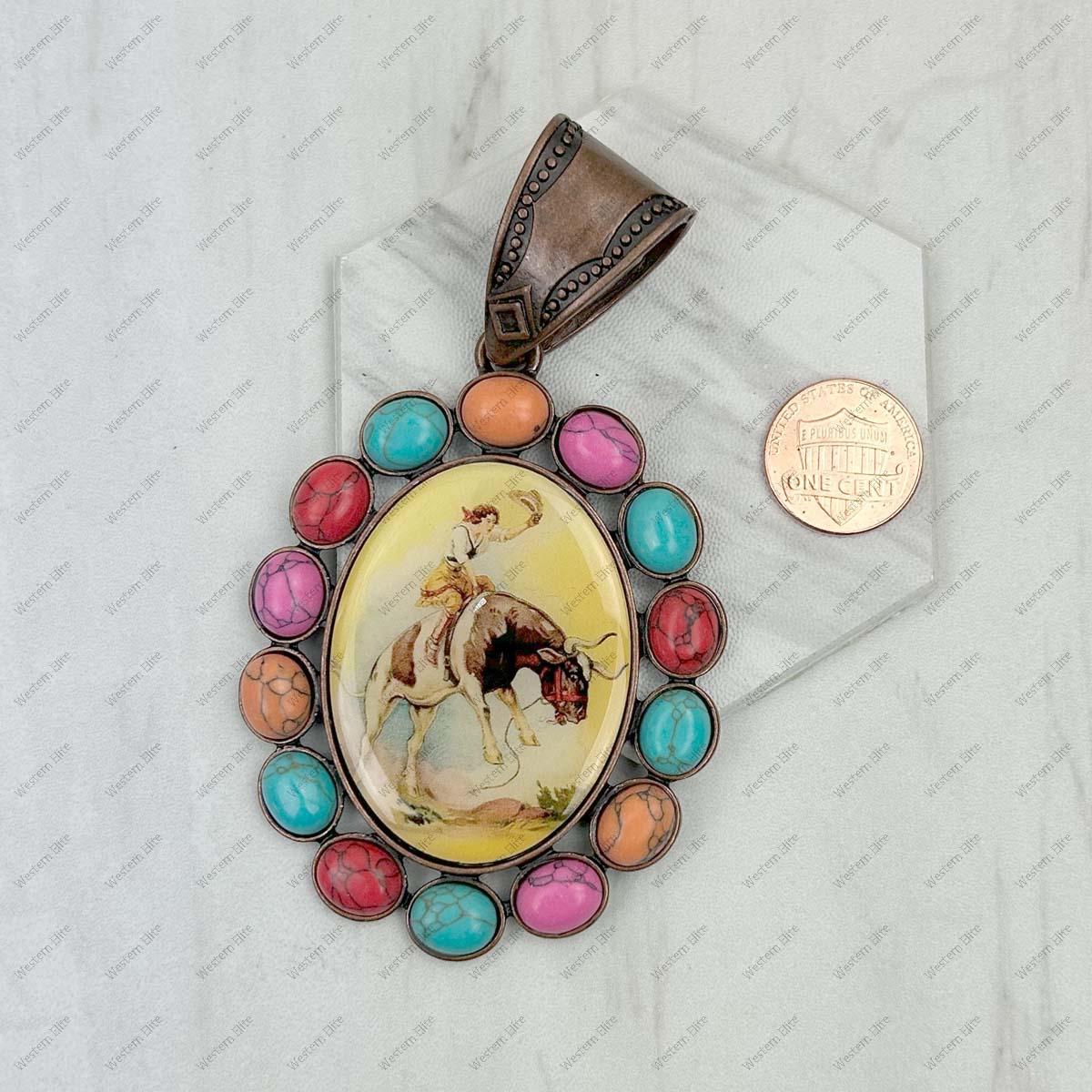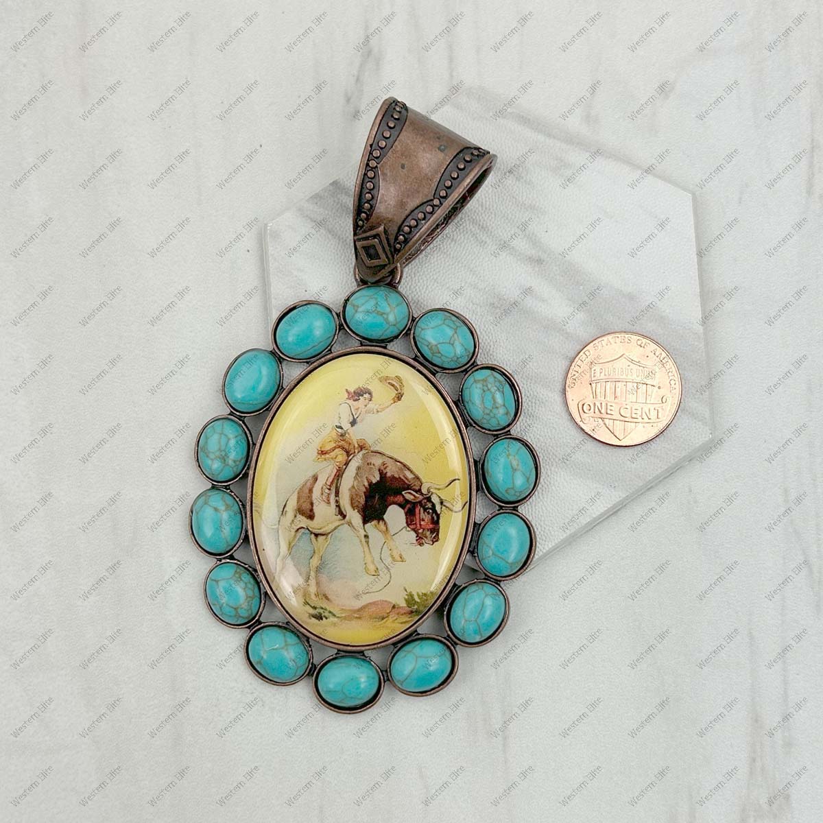 PD231210CP-13 Copper metal with blue turquoise stone oval cowboy Pendent