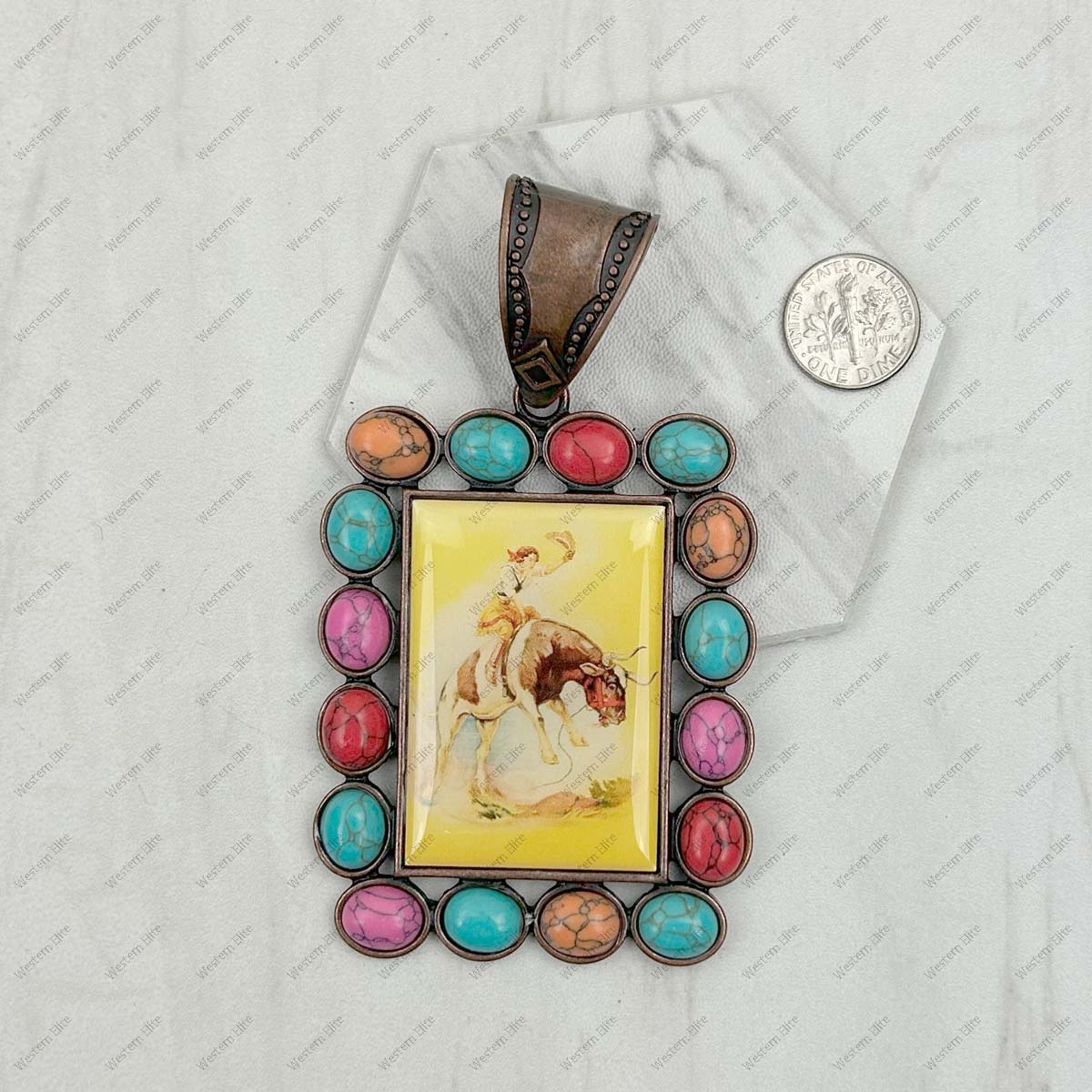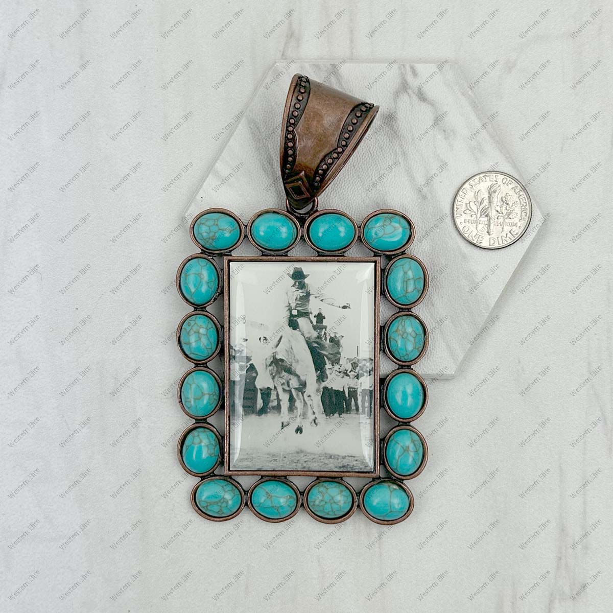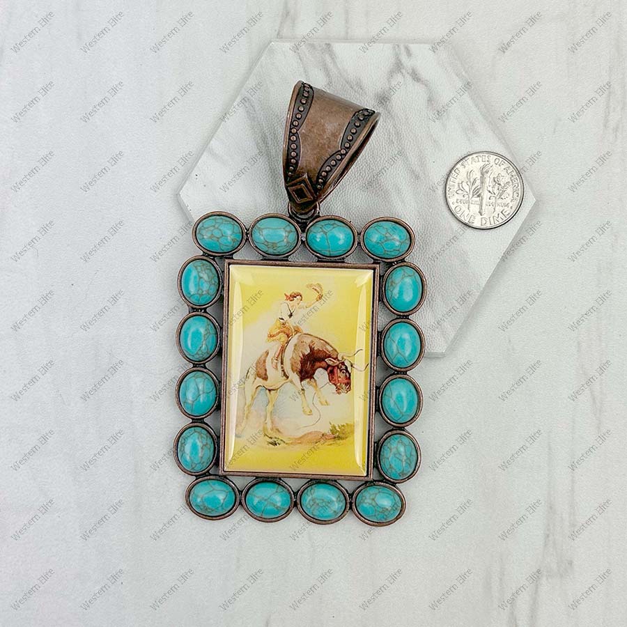 PD231210CP-49 Copper metal with blue turquoise stone triangle cowboy Pendent