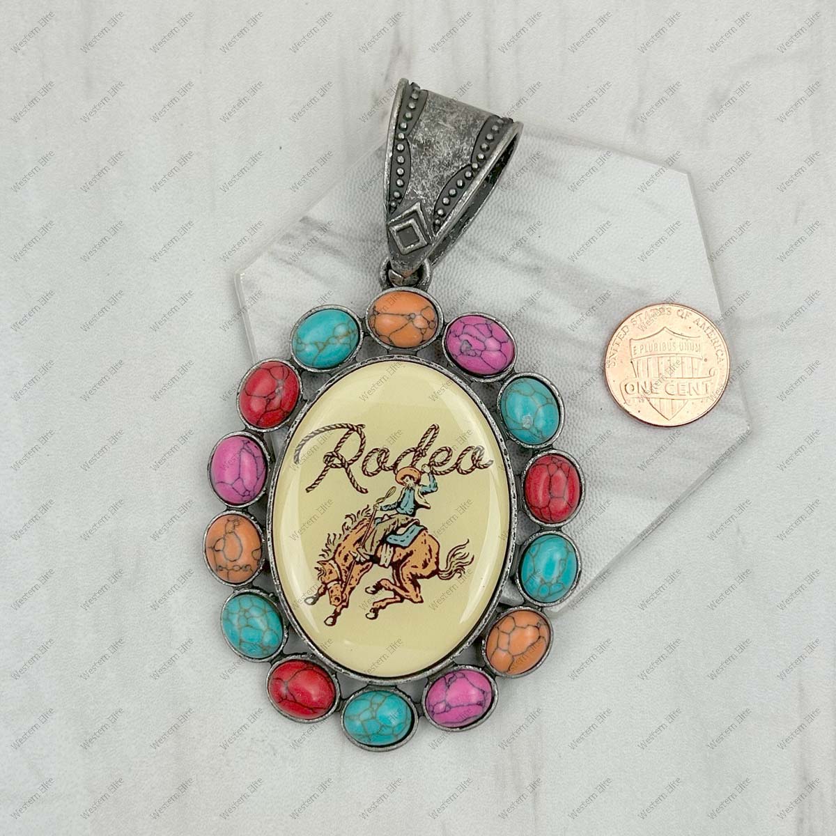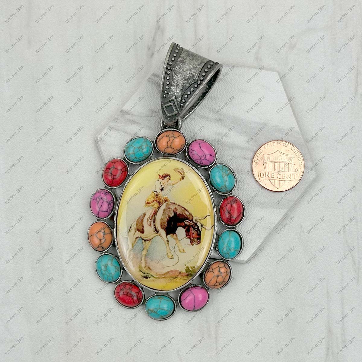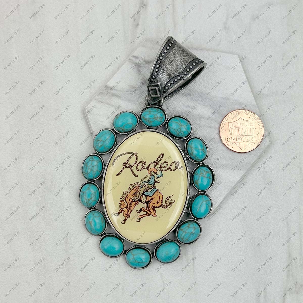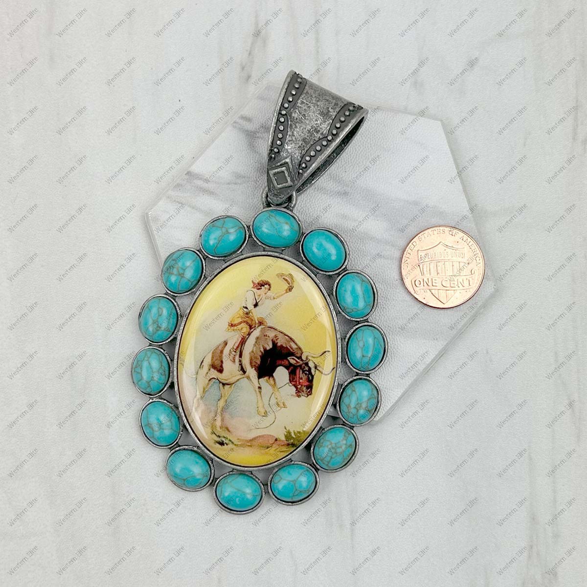 PD231210SL-09 silver metal with blue turquoise stone oval cowboy Pendent