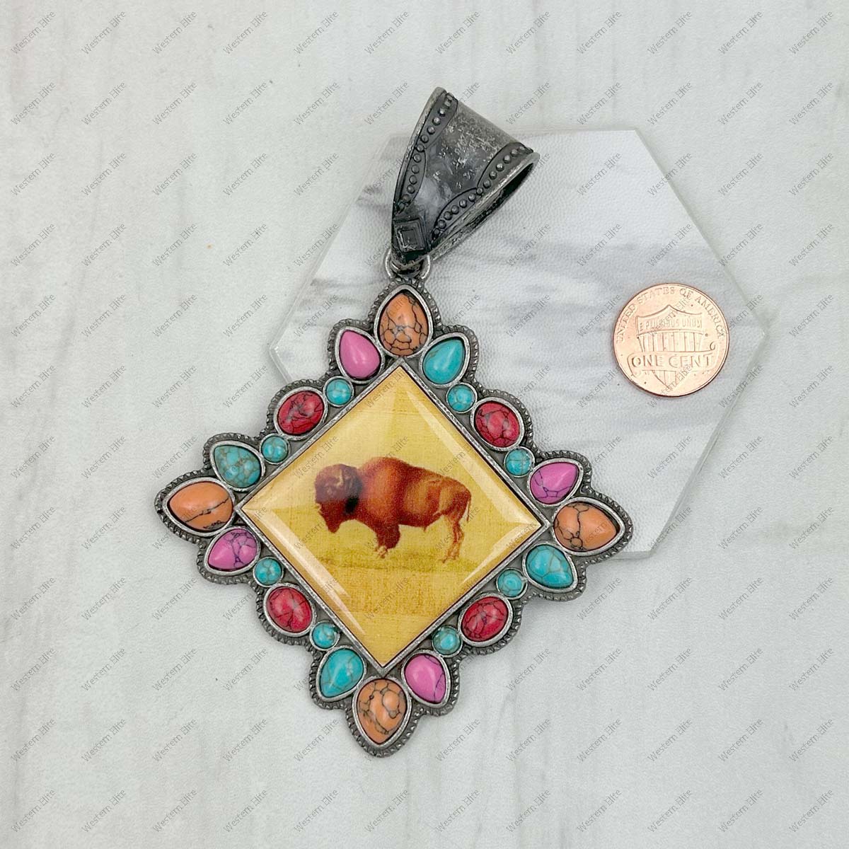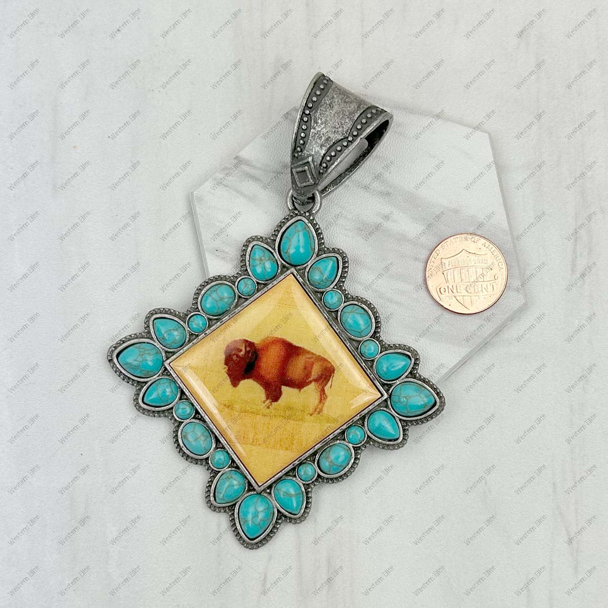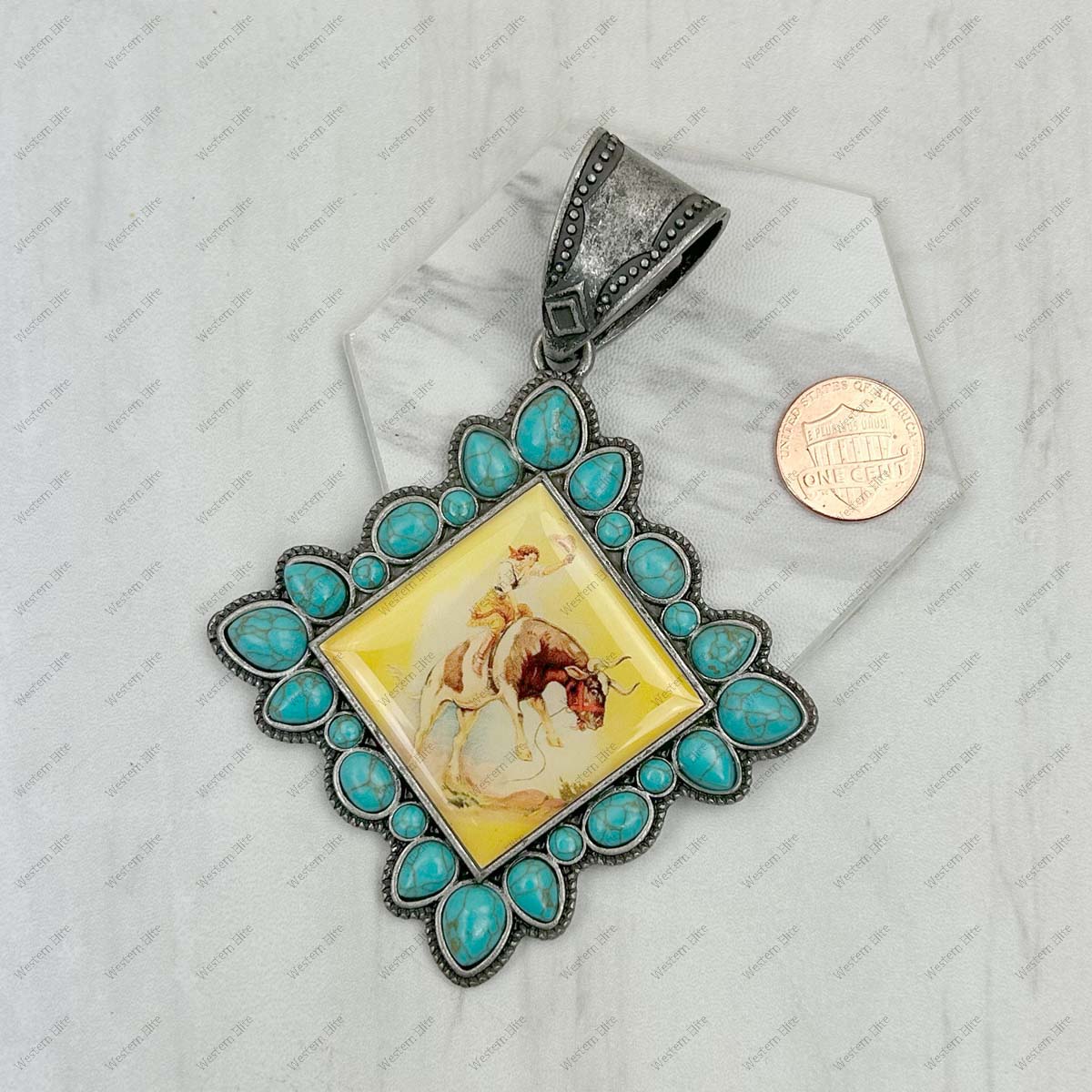 PD231210SL-17 silver metal with blue turquoise stone square cowgirl Pendent