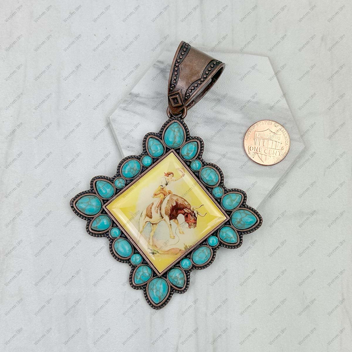 Copper metal with blue turquoise stone square cowgirl Pendent