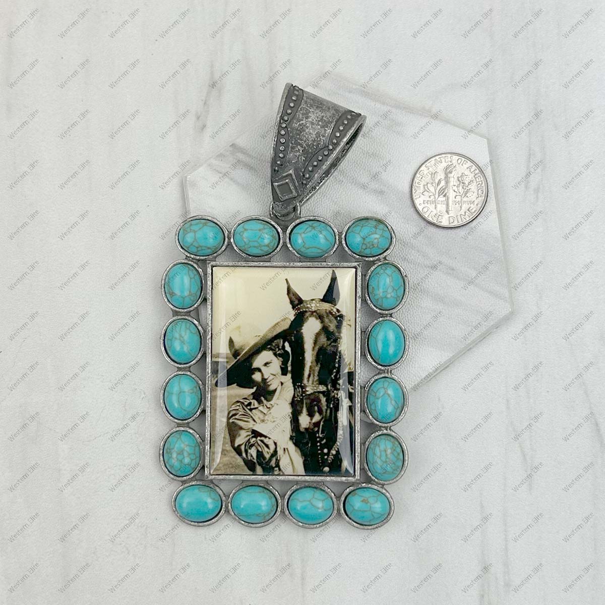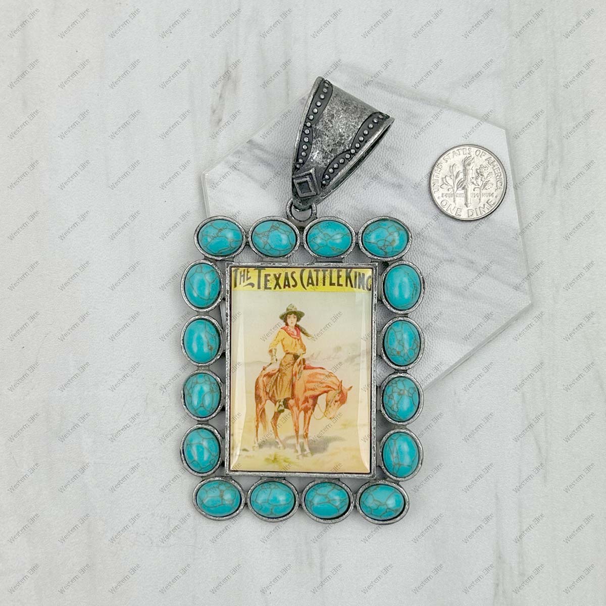 PD231210SL-37 silver metal with blue turquoise stone triangle cowboy Pendent