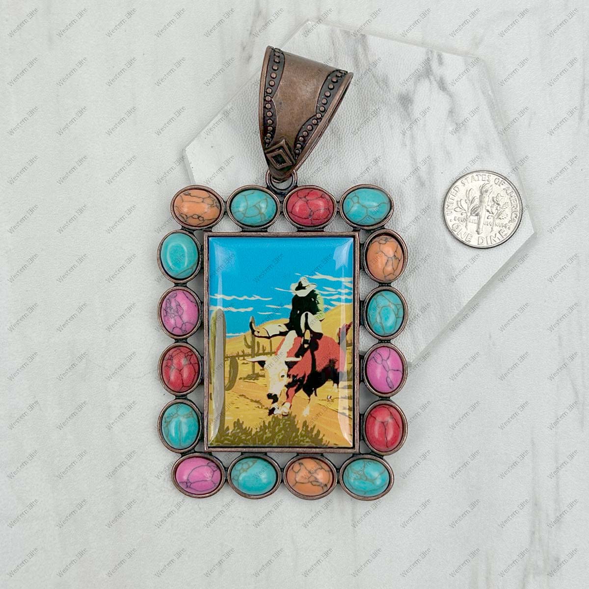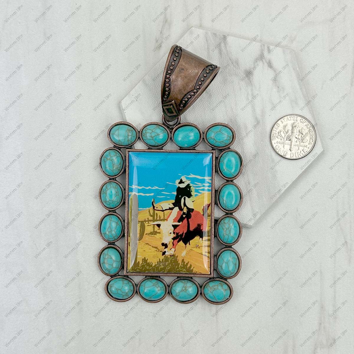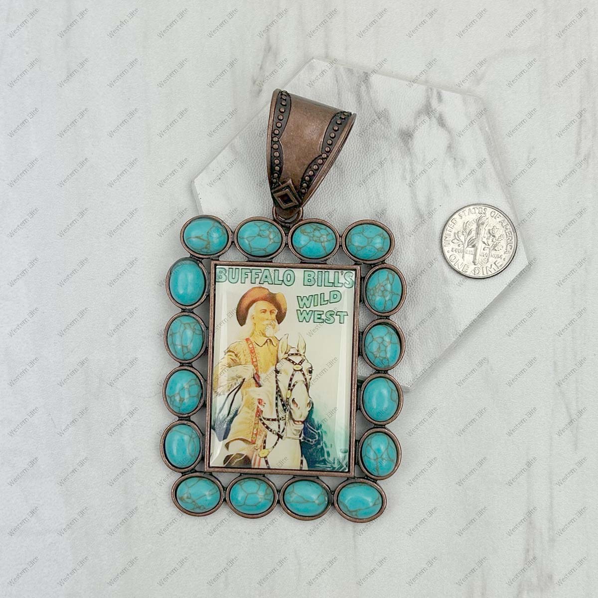 PD231210CP-57 Copper metal with blue turquoise stone triangle buffalo bill Pendent