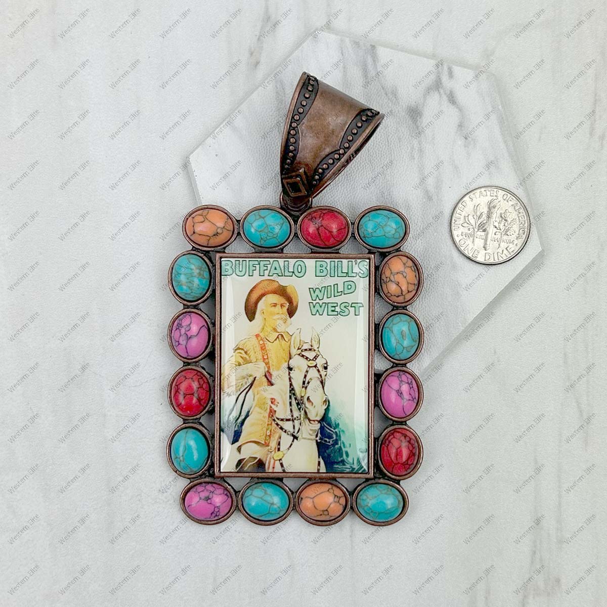 Copper metal with blue turquoise stone triangle buffalo bill Pendent