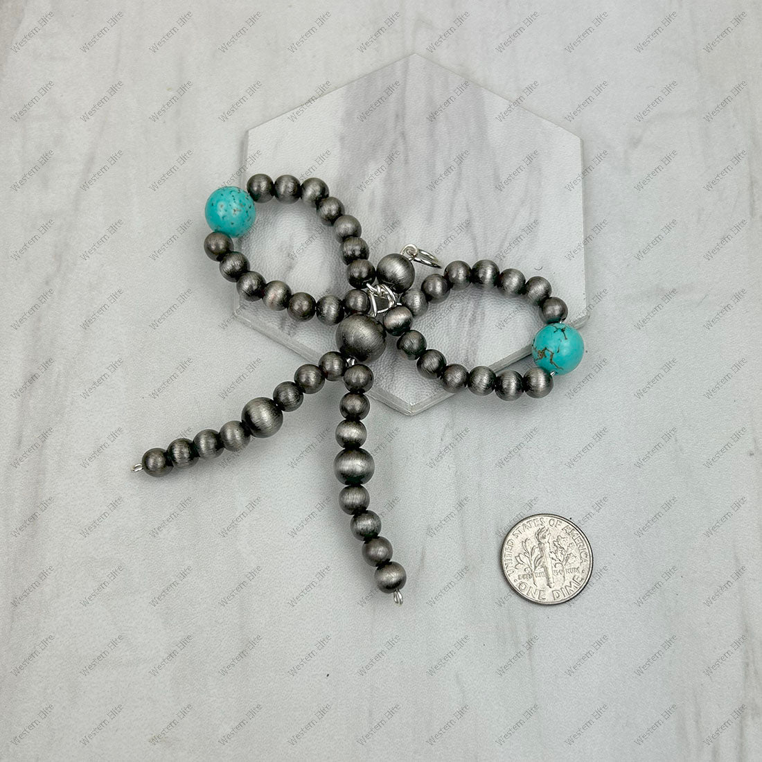 6mm Silver Navajo pearl with blue turquoise stone beads bow tie pendent