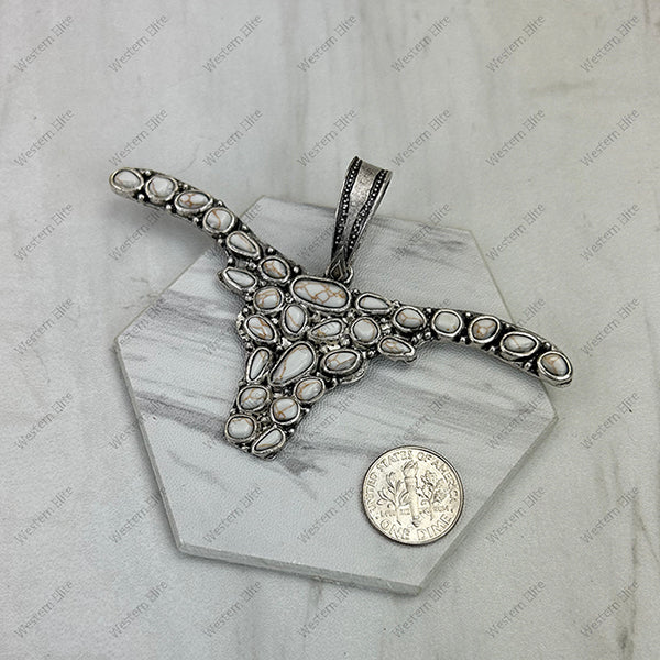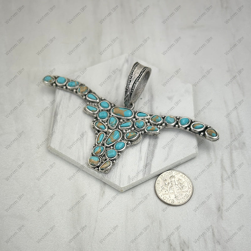 Silver metal with blue turquoise stone long horn Pendent