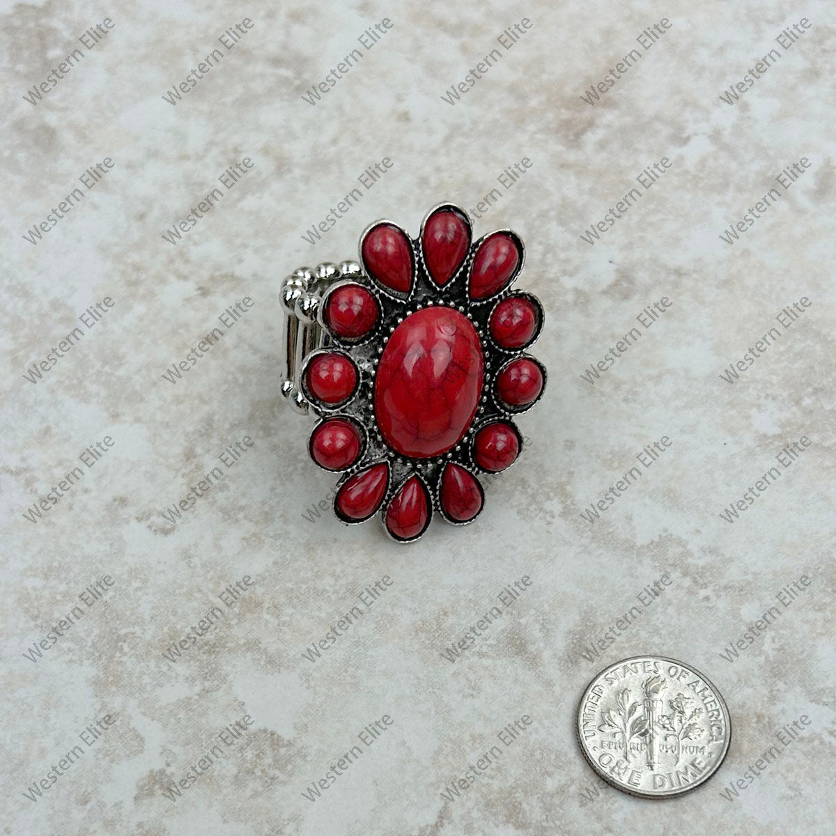 RGS230701-02-RED Silver with red stone concho stretch Ring
