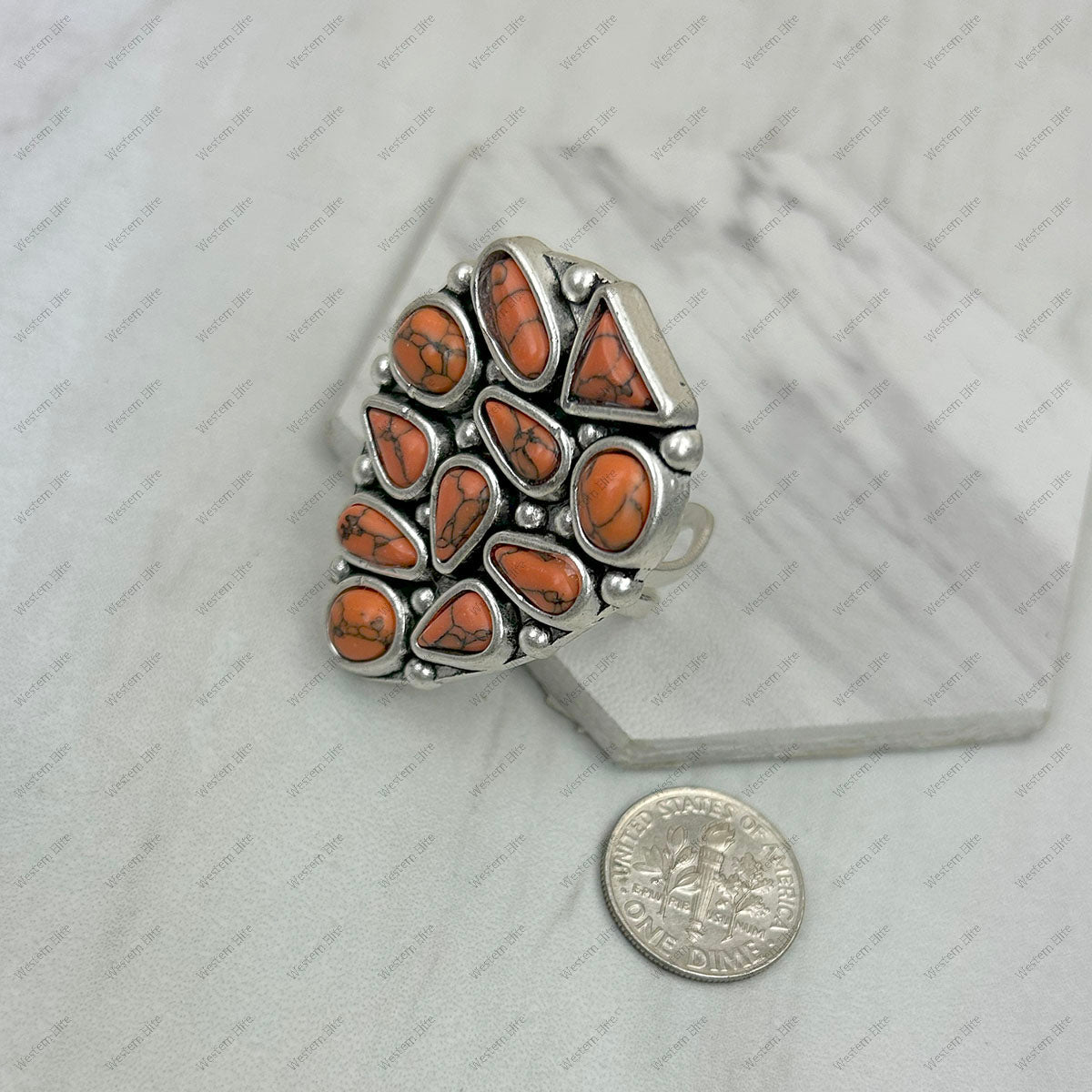 Silver metal with blue turquoise stone Teardrop adjustable Ring