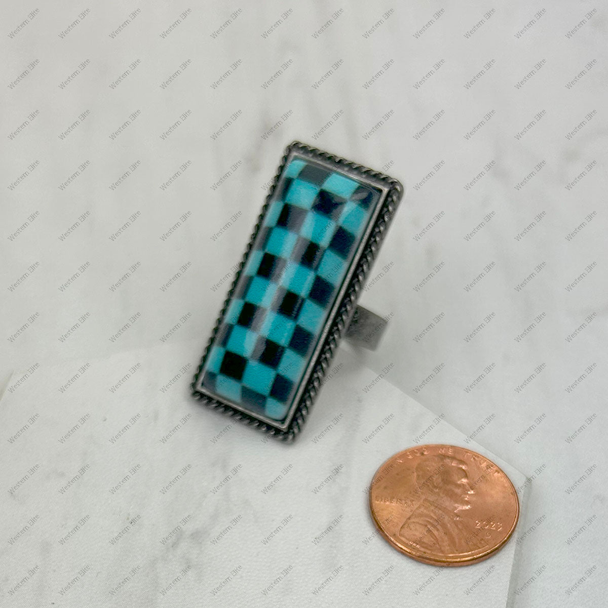 Silver metal checker print bar Ring