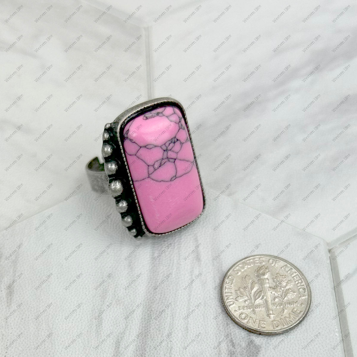 Silver metal with blue turquoise rectangle stone adjustable Ring