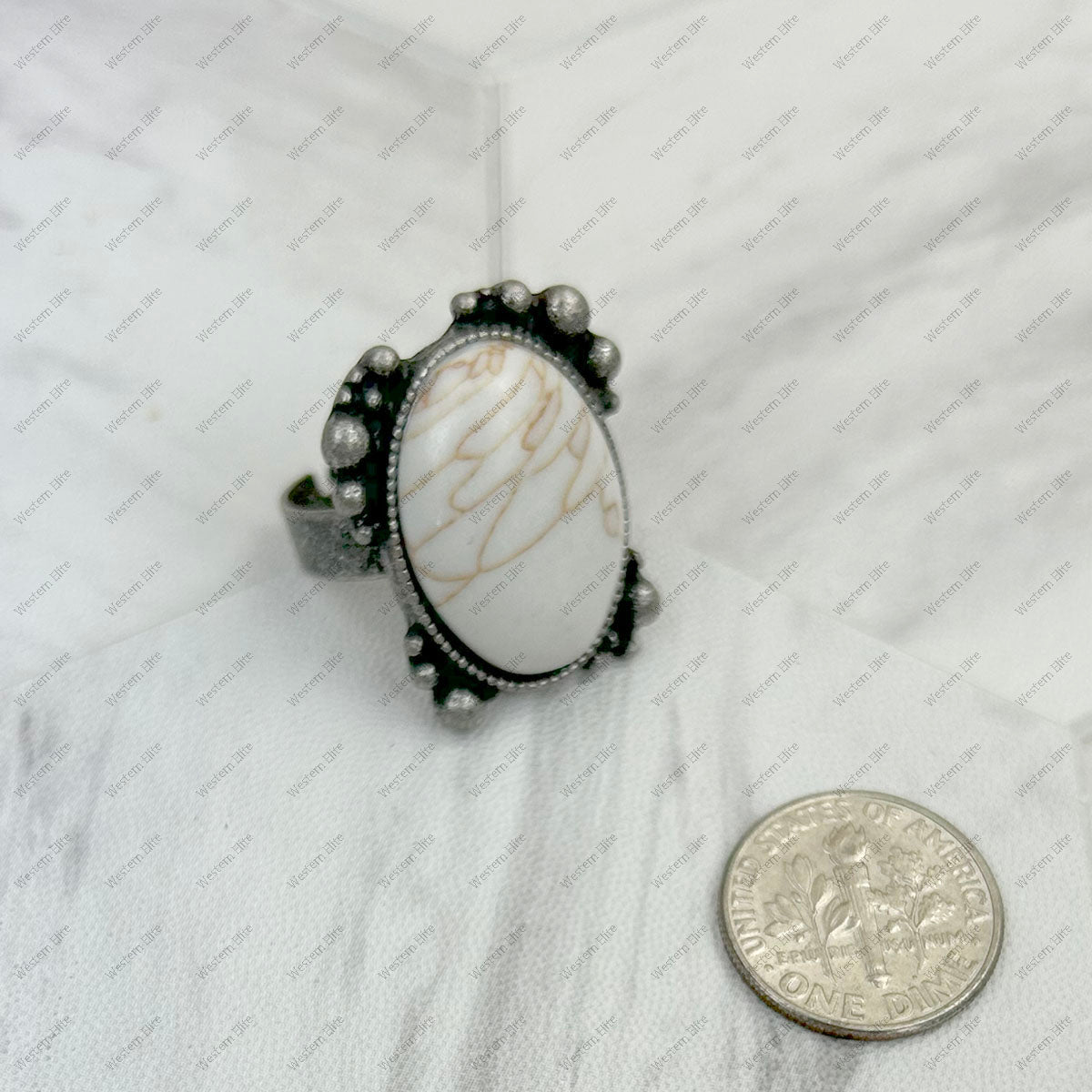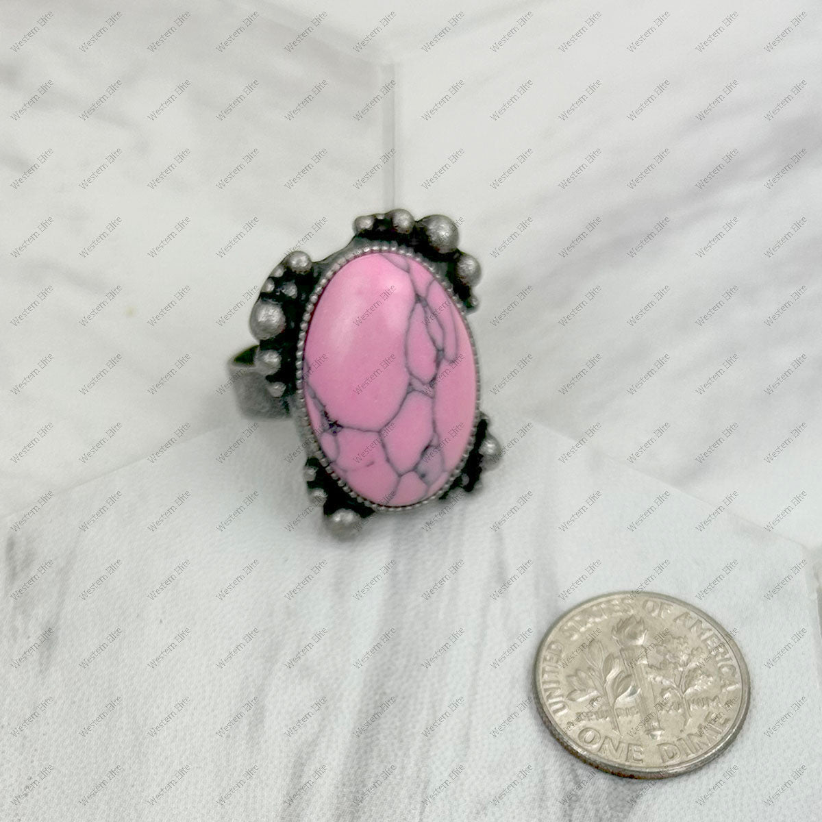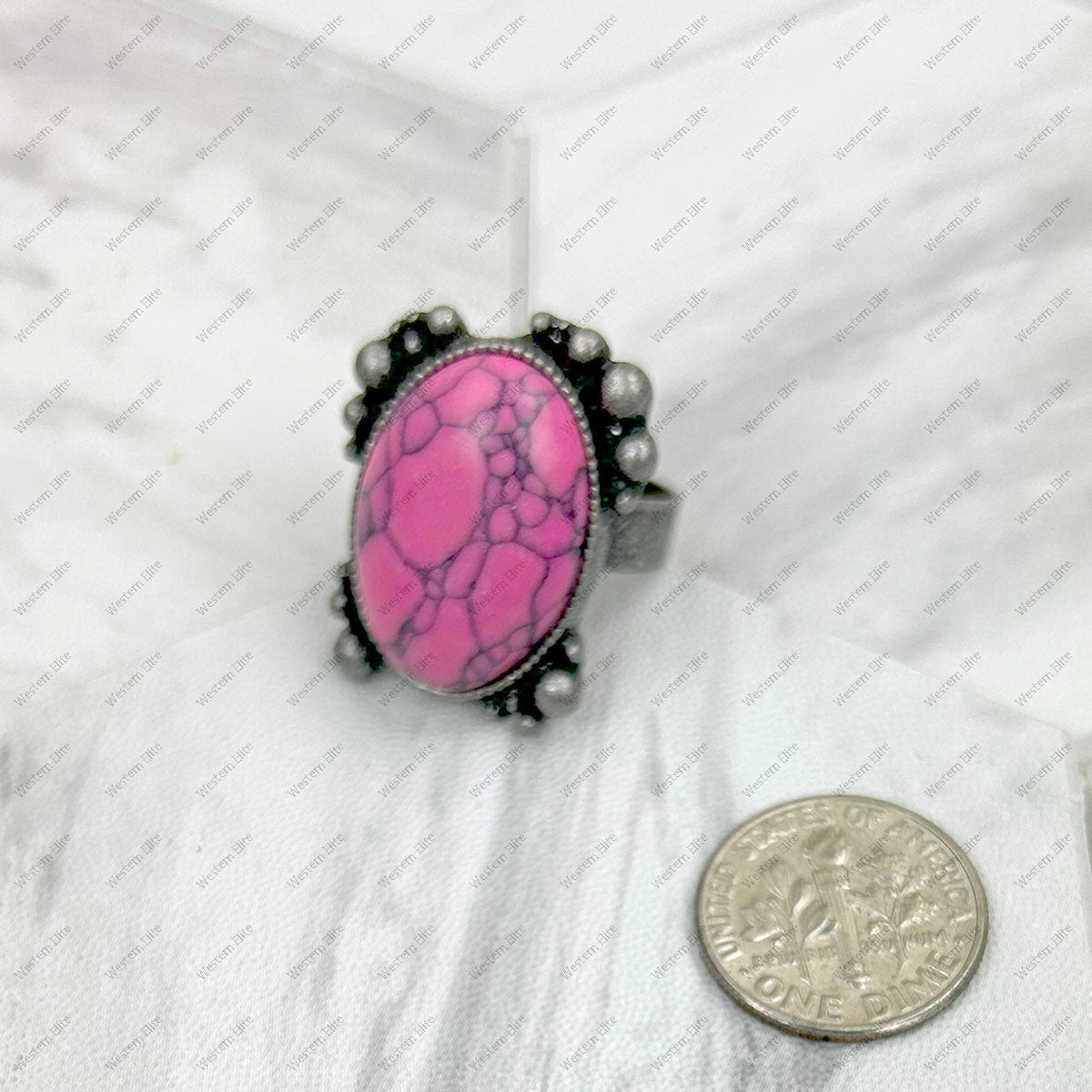 RZ231205-111 Silver metal with blue turquoise oval stone adjustable Ring