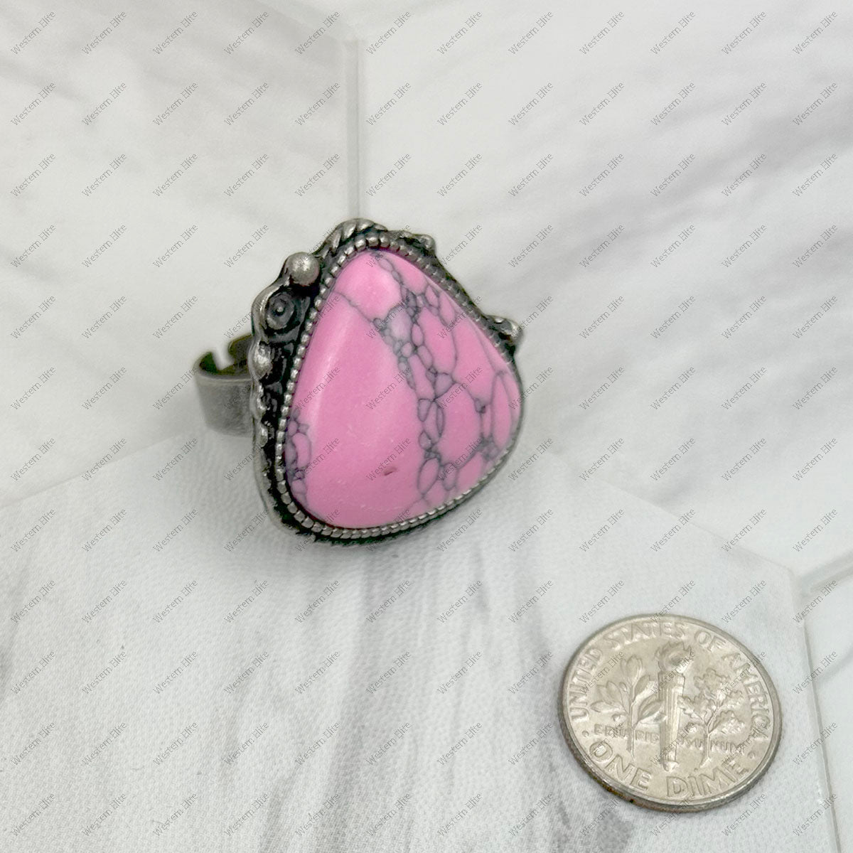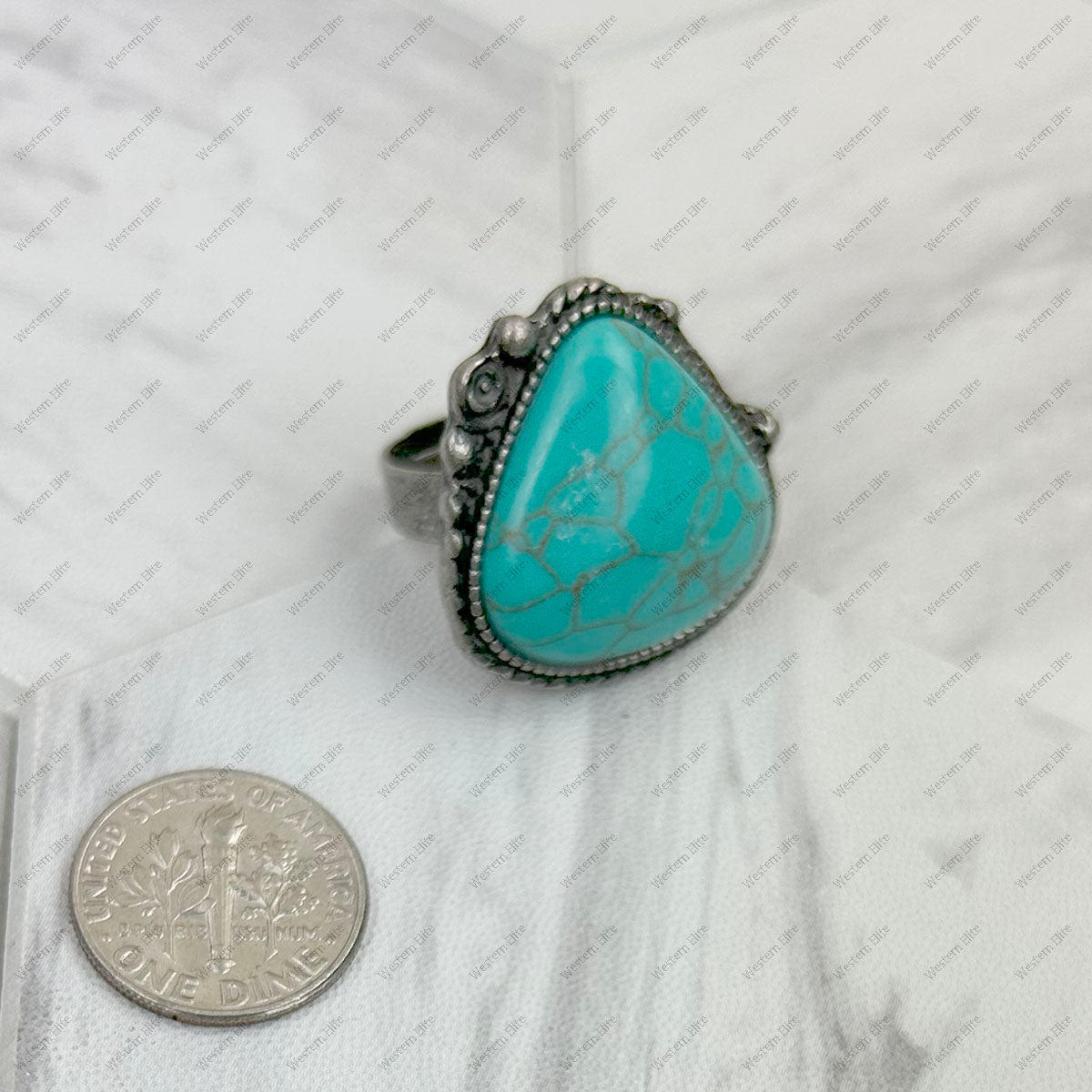 RZ231205-91 Silver metal with blue turquoise teardrop stone adjustable Ring