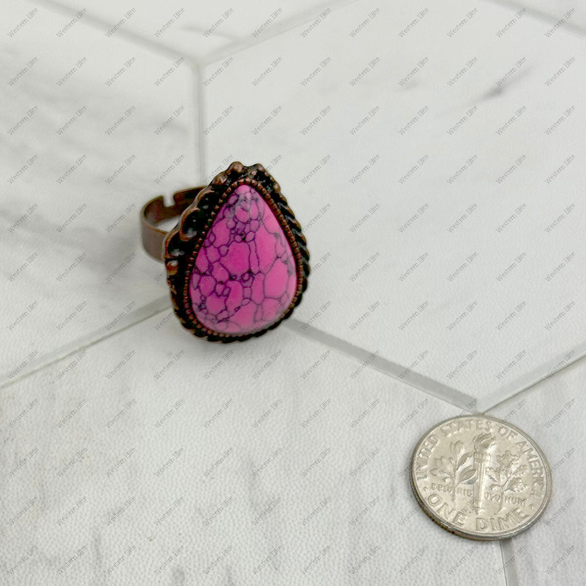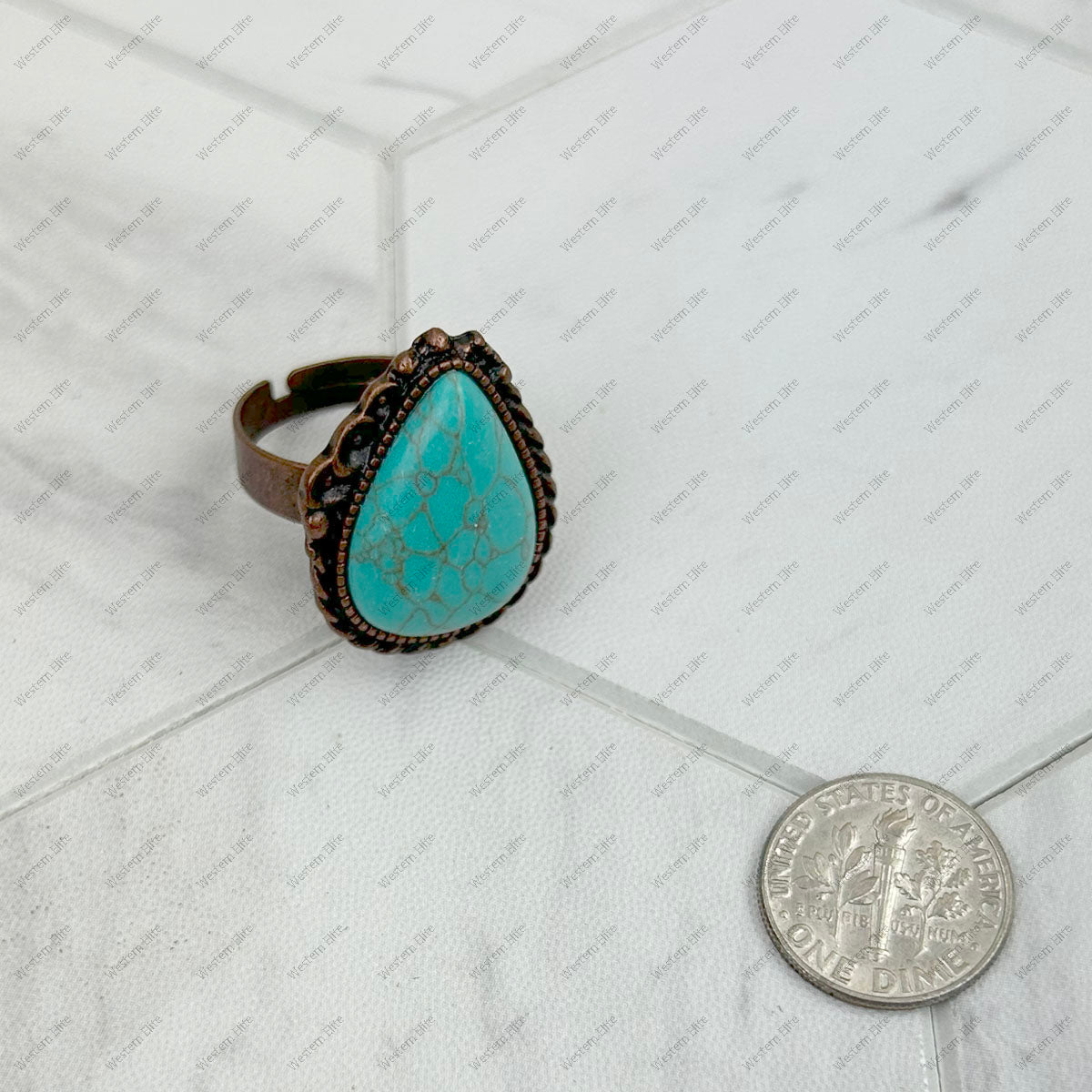 Copper metal with blue turquoise teardrop stone adjustable Ring