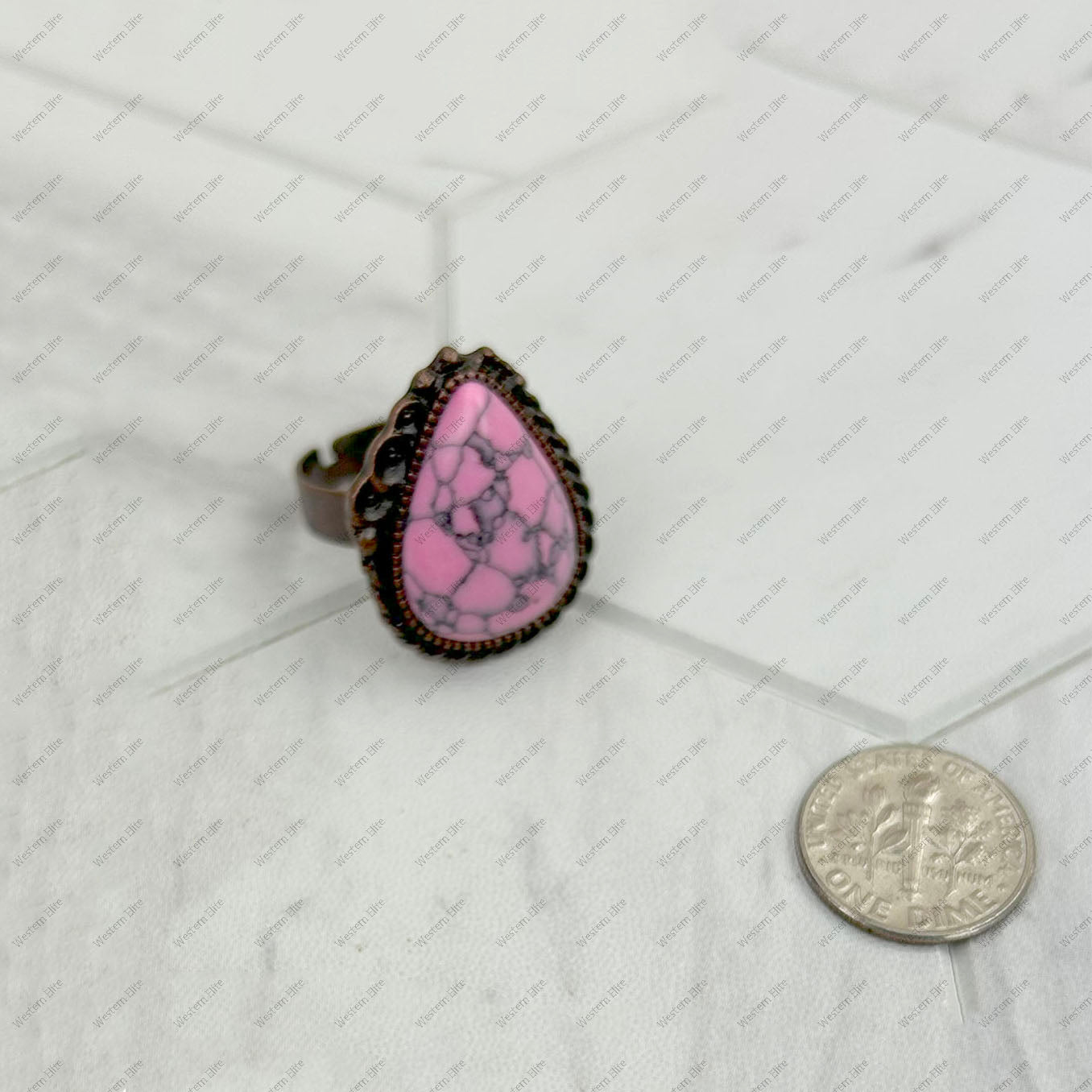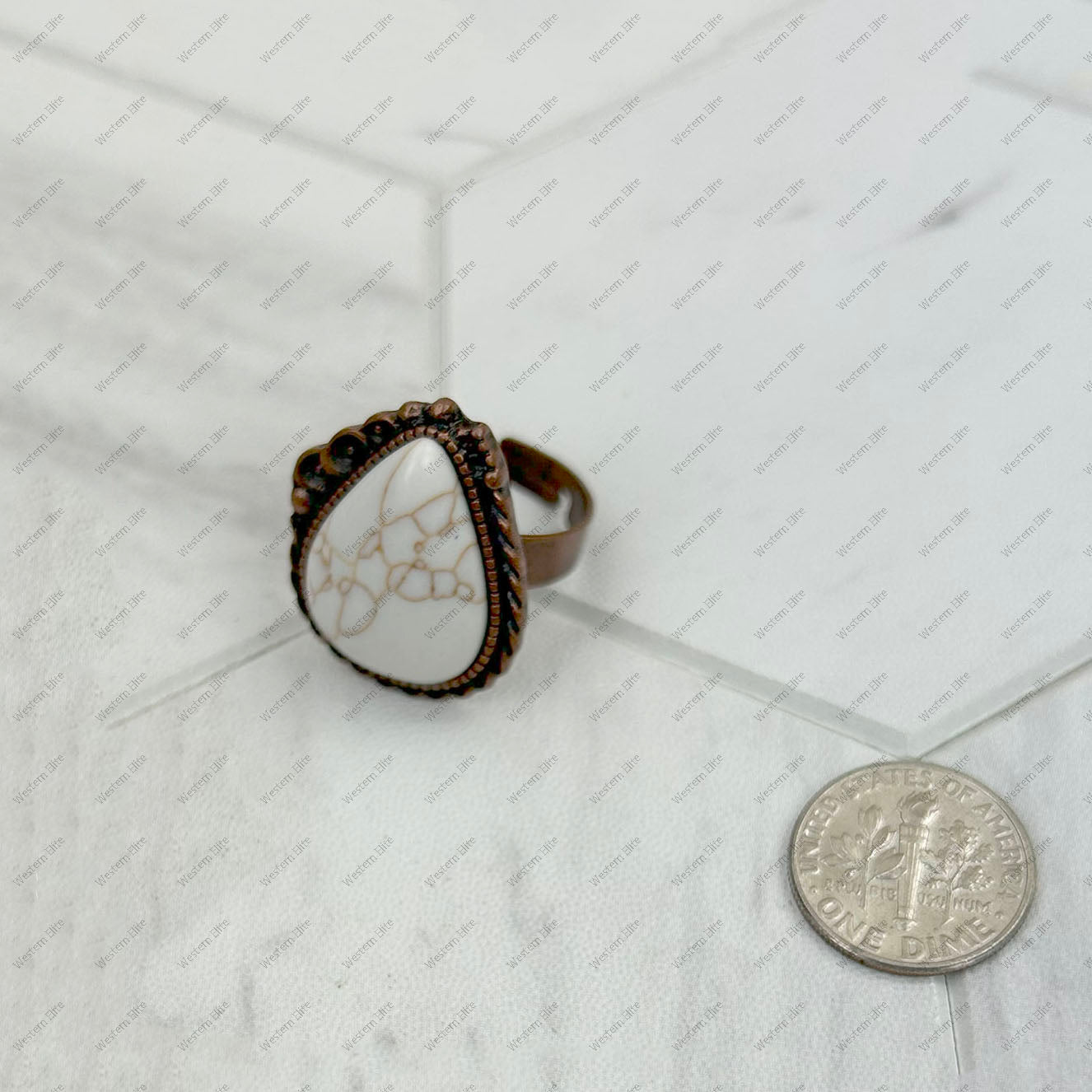 RZ231205-16 Copper metal with blue turquoise teardrop stone adjustable Ring