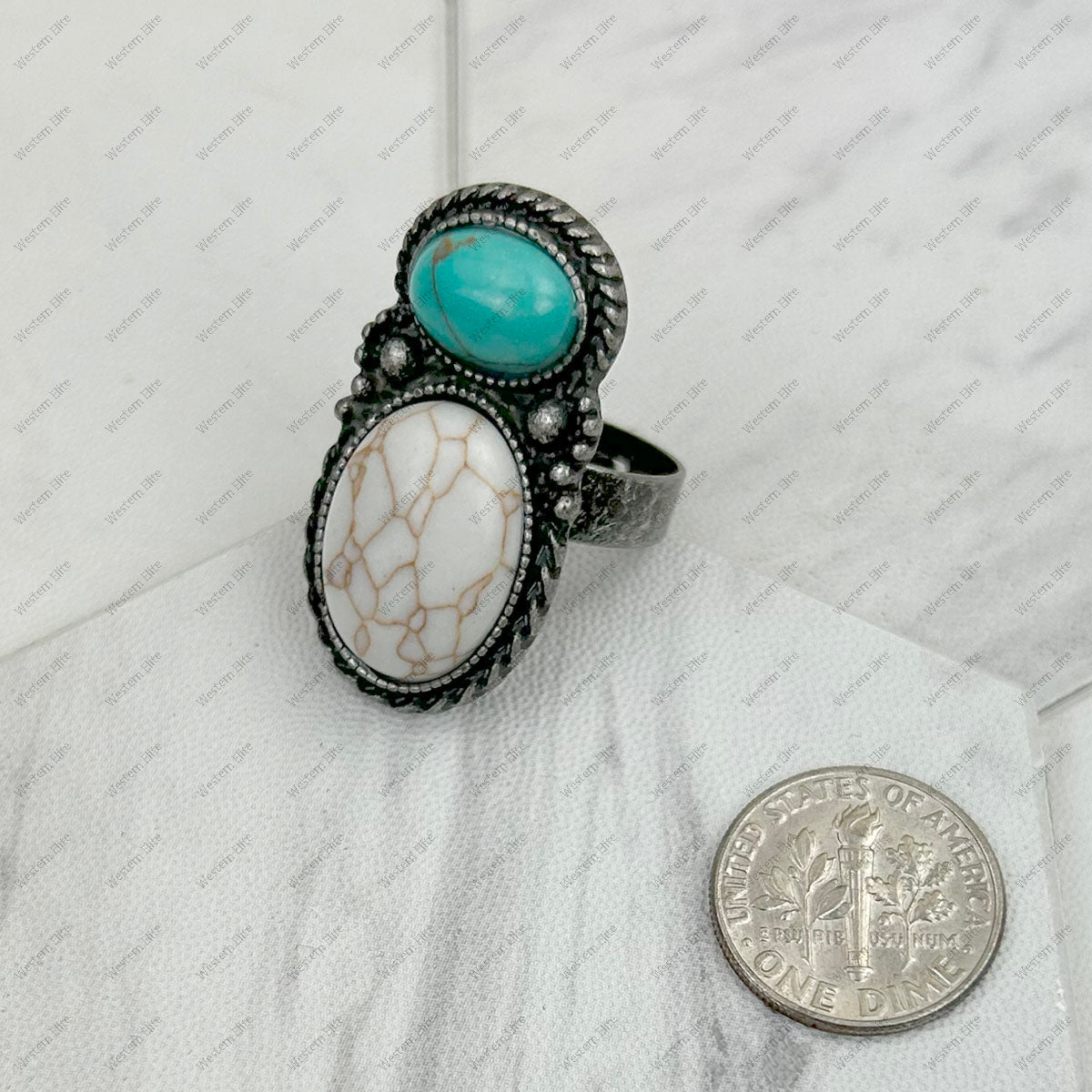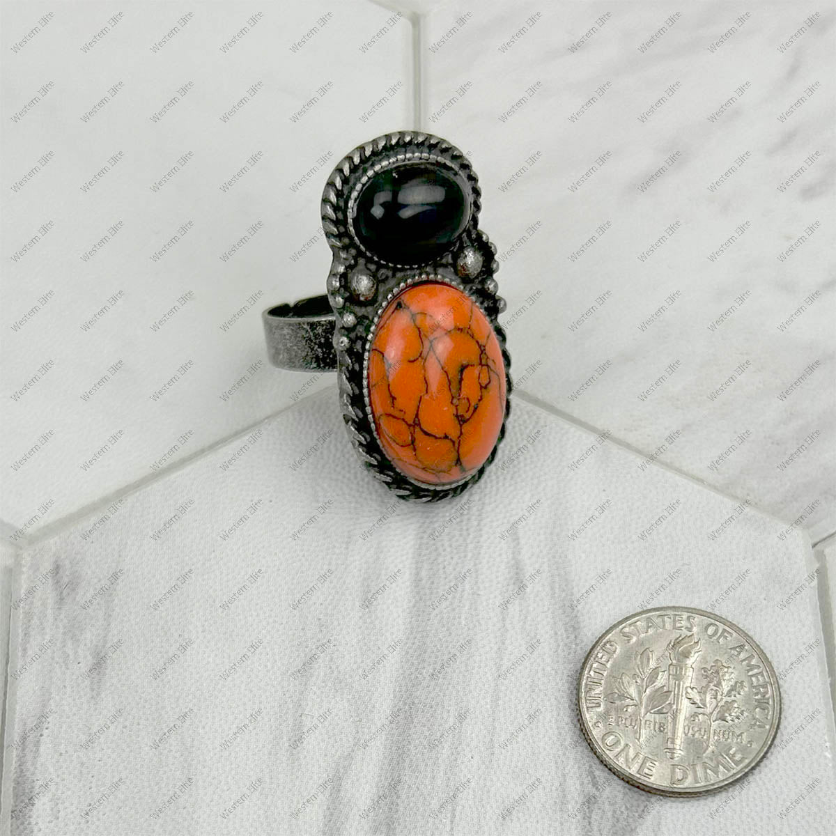 RZ231205-21 Silver metal with black and orange turquoise stone adjustable Ring