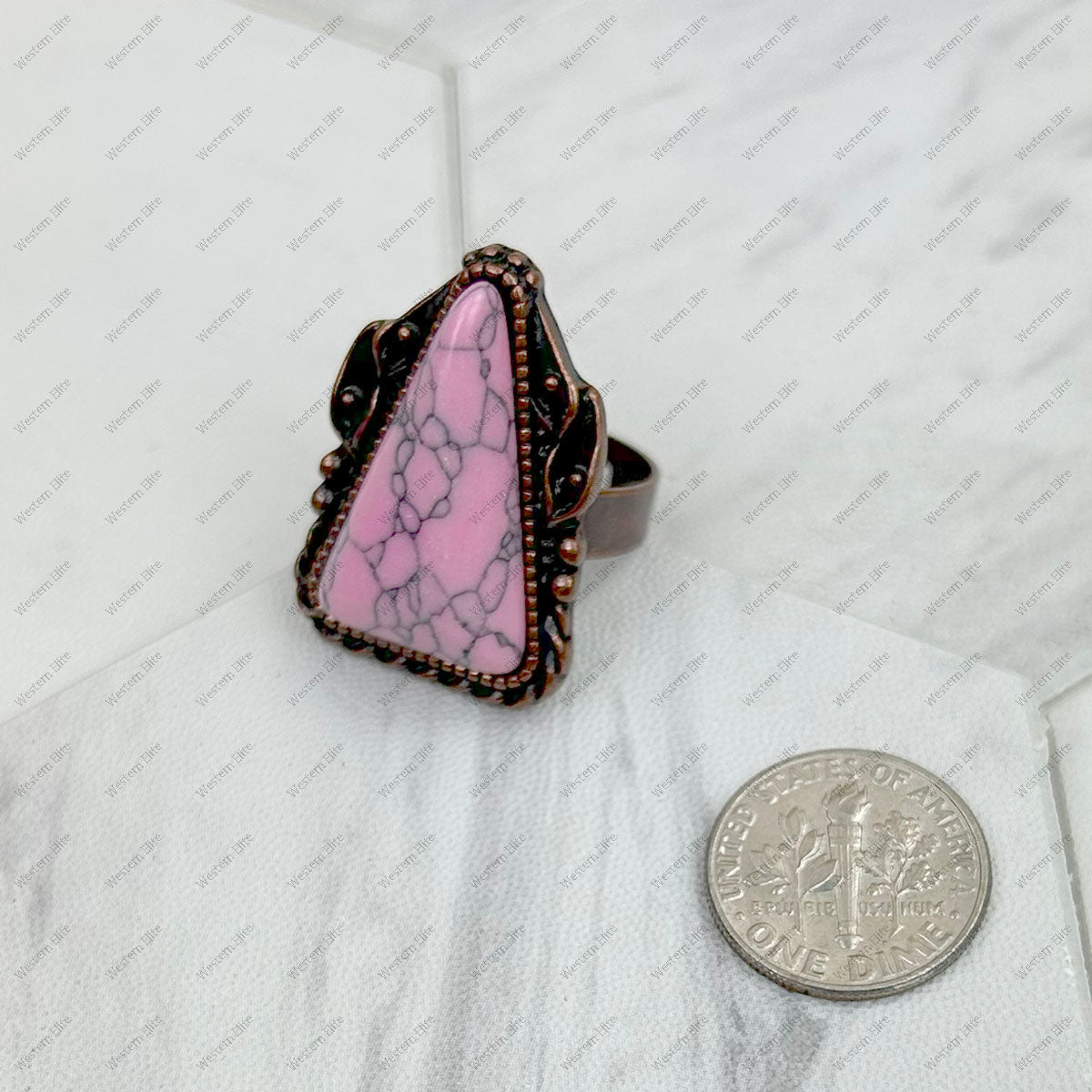 RZ231205-56 Copper metal with blue turquoise triangle stone adjustable Ring
