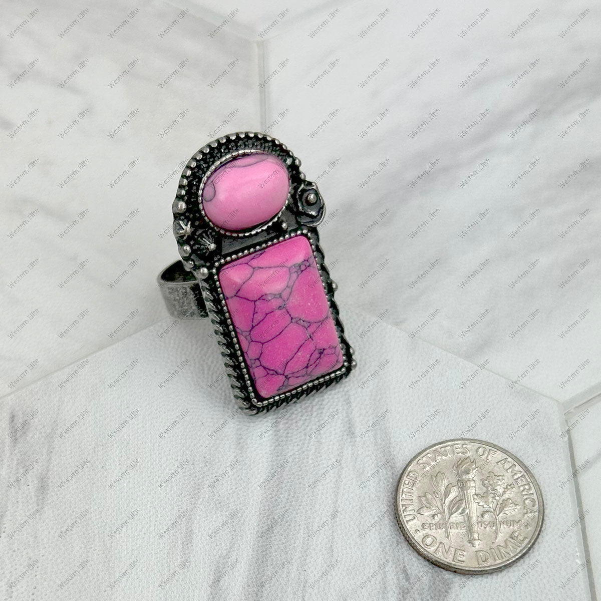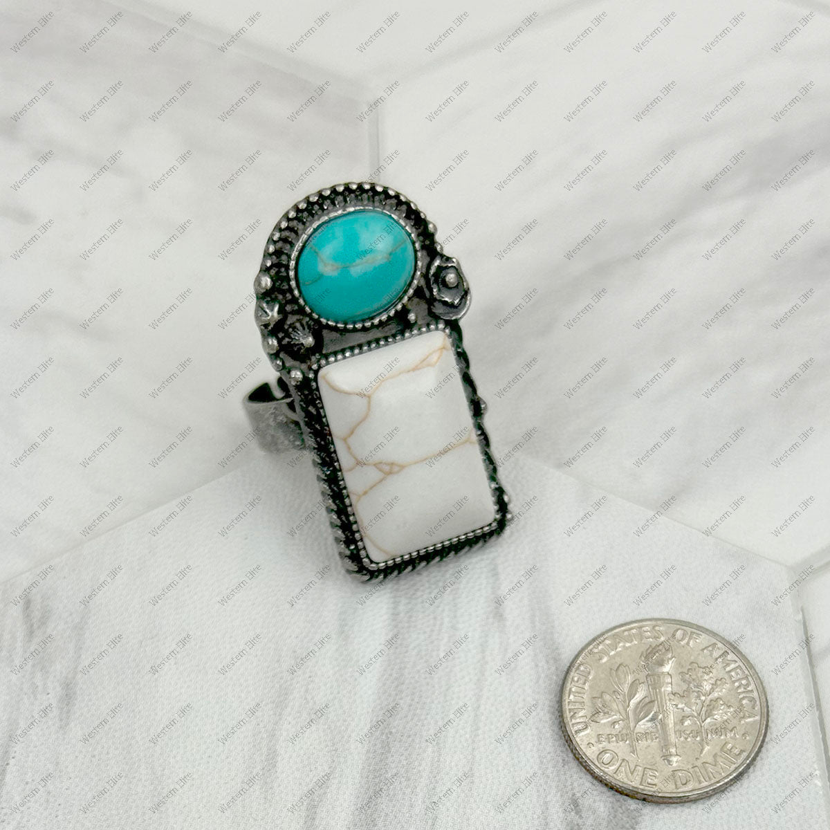 RZ231205-81 Silver metal with black and orange turquoise stone adjustable Ring