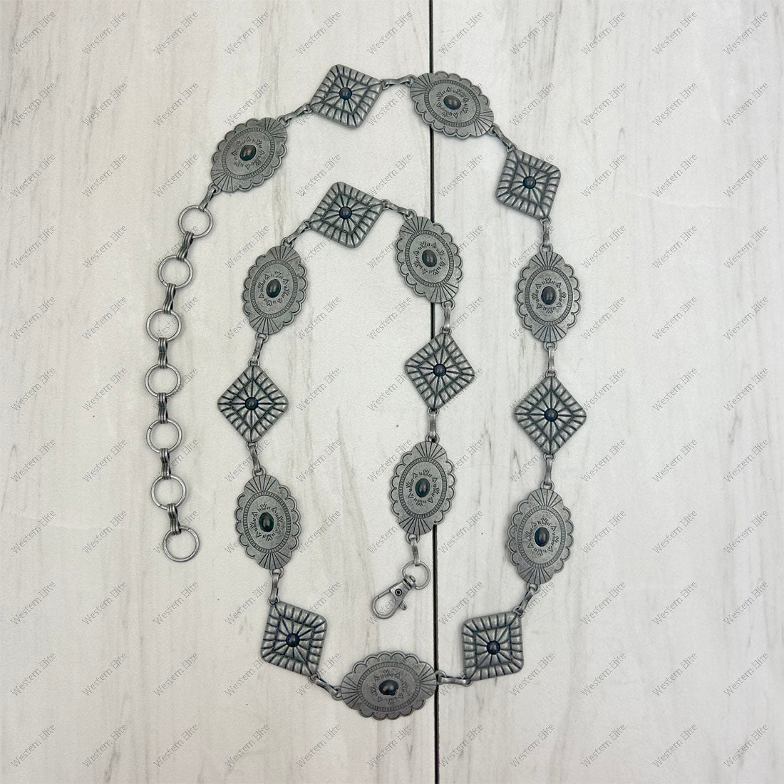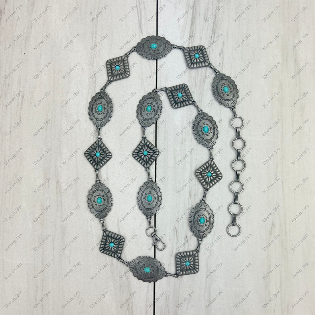 Silver metal with blue turquoise stone chain belt