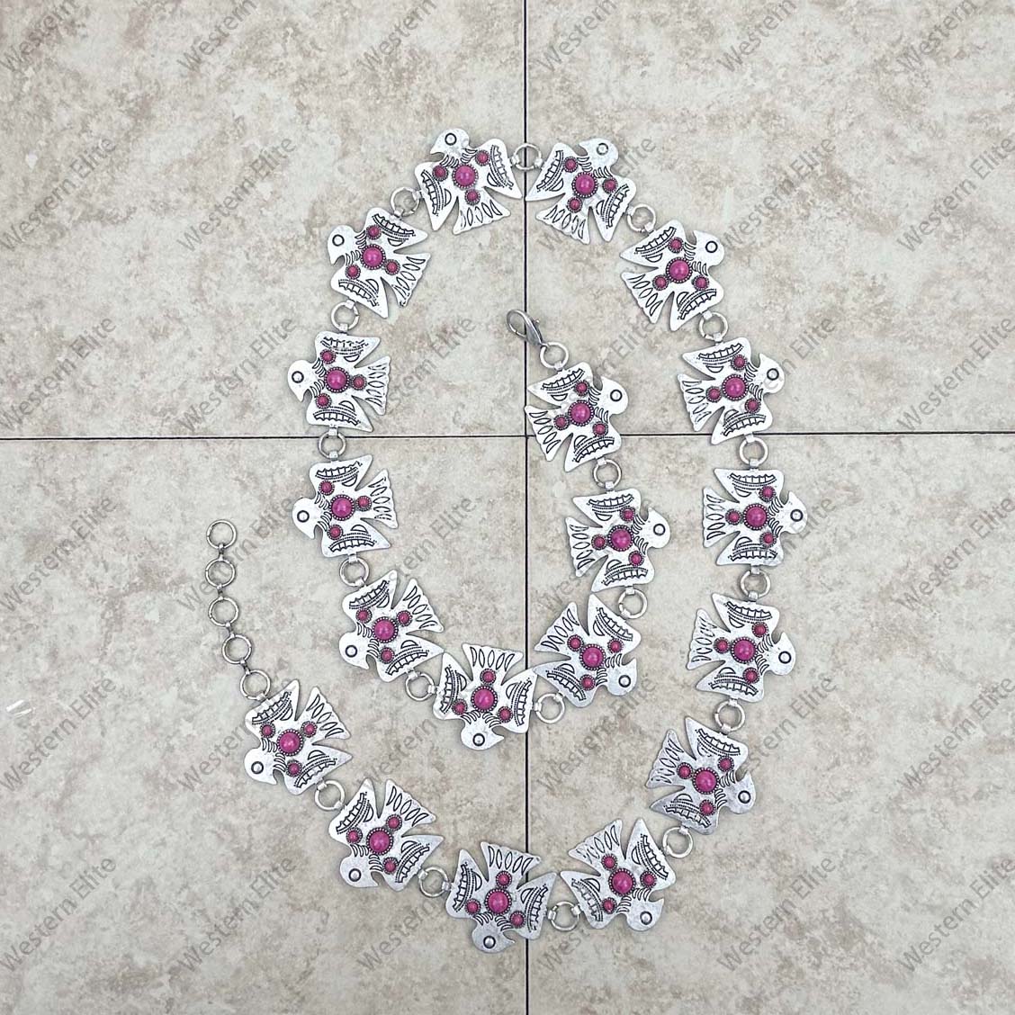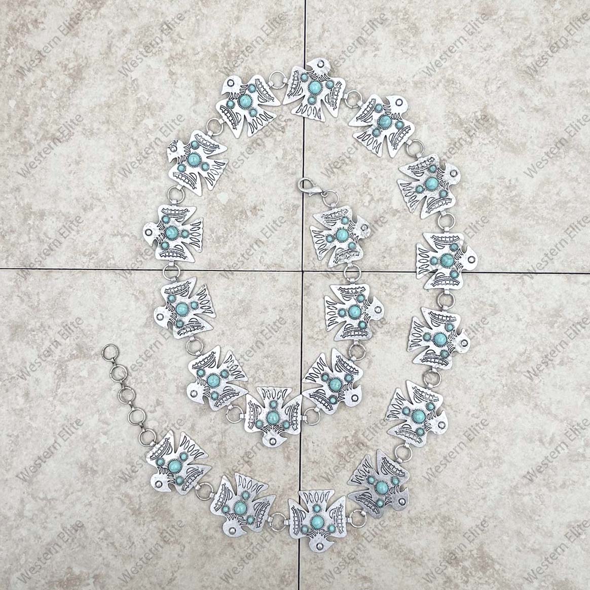 BLT230225-01-BLUE 39 Inches long silver metal with blue turquoise stone eagles adjustable chain belt