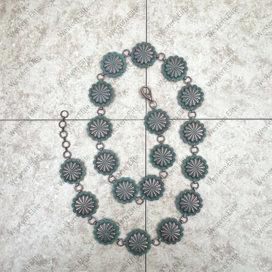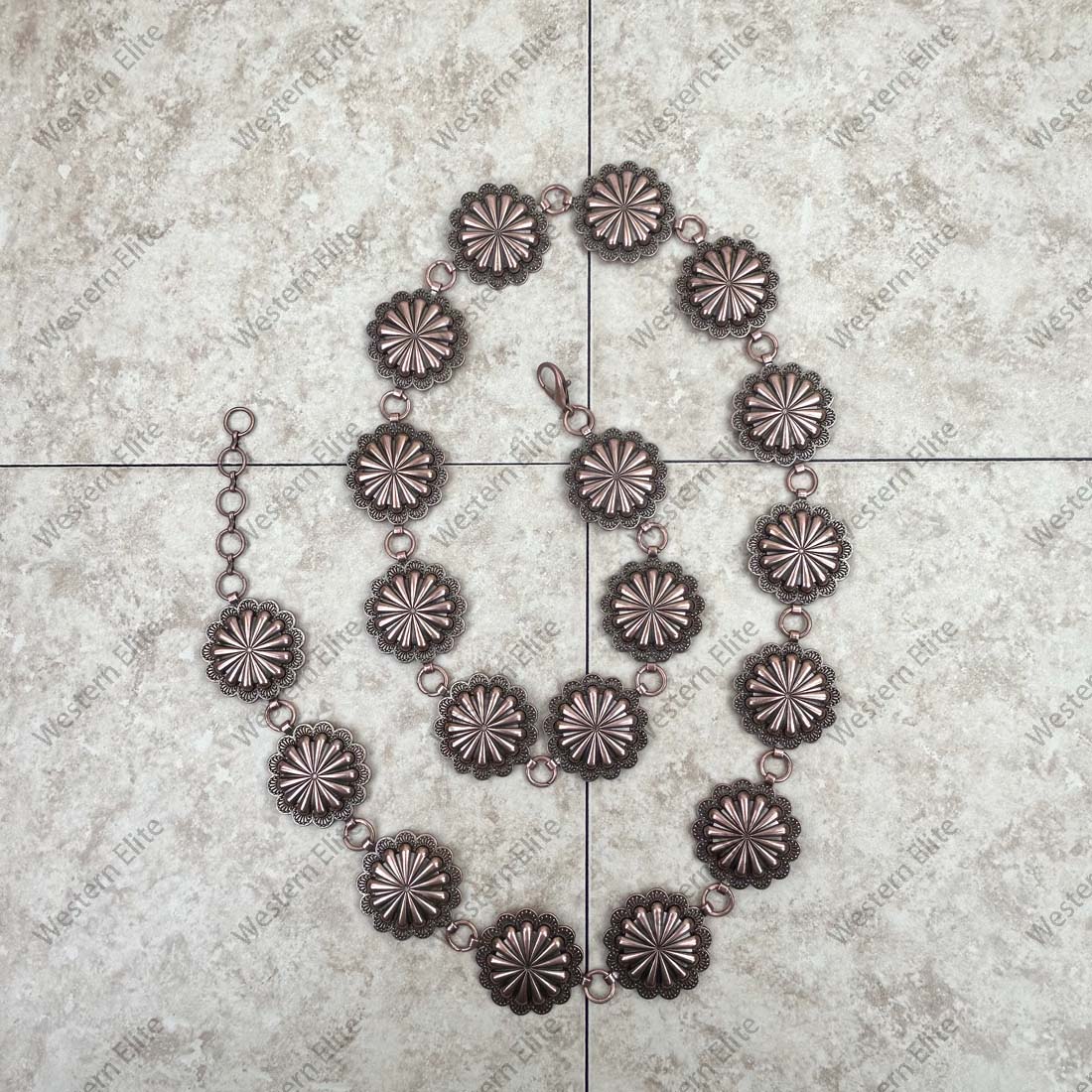 39 Inches long silver metal flower conchos adjustable chain belt Extension: 3 inches long