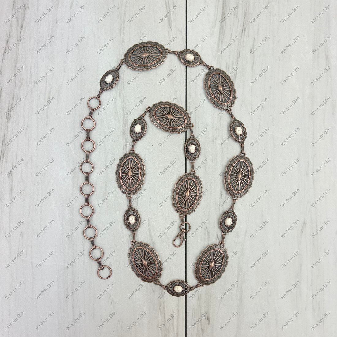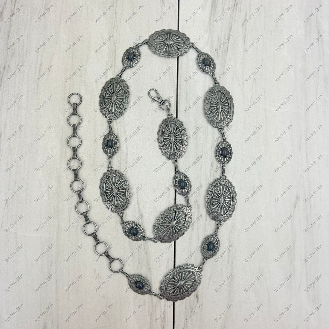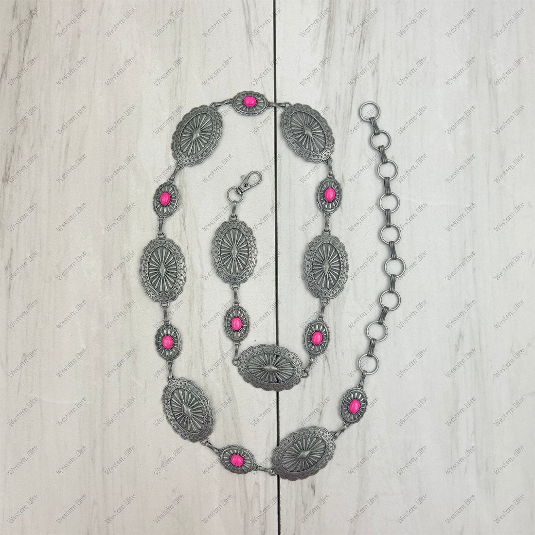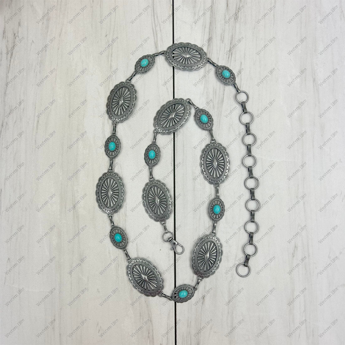 BLT1950-BLUE Silver metal with blue turquoise stone chain belt
