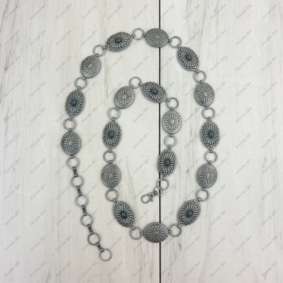 BLT1750-BLUE Silver metal with blue turquoise stone chain belt