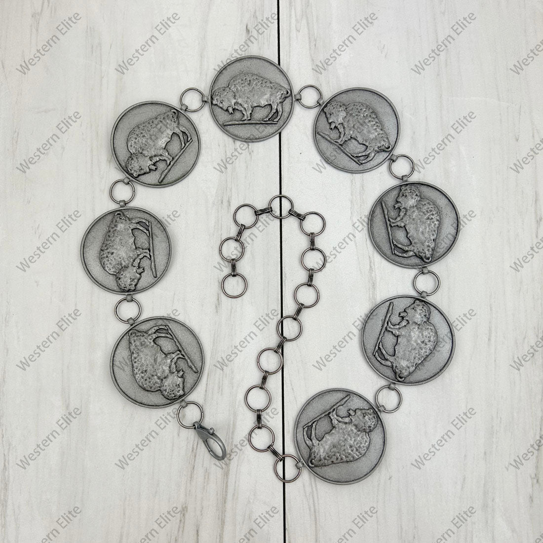 | 29 Inches long copper metal buffalo circle adjustable chain belt Extension: 13 inches long |