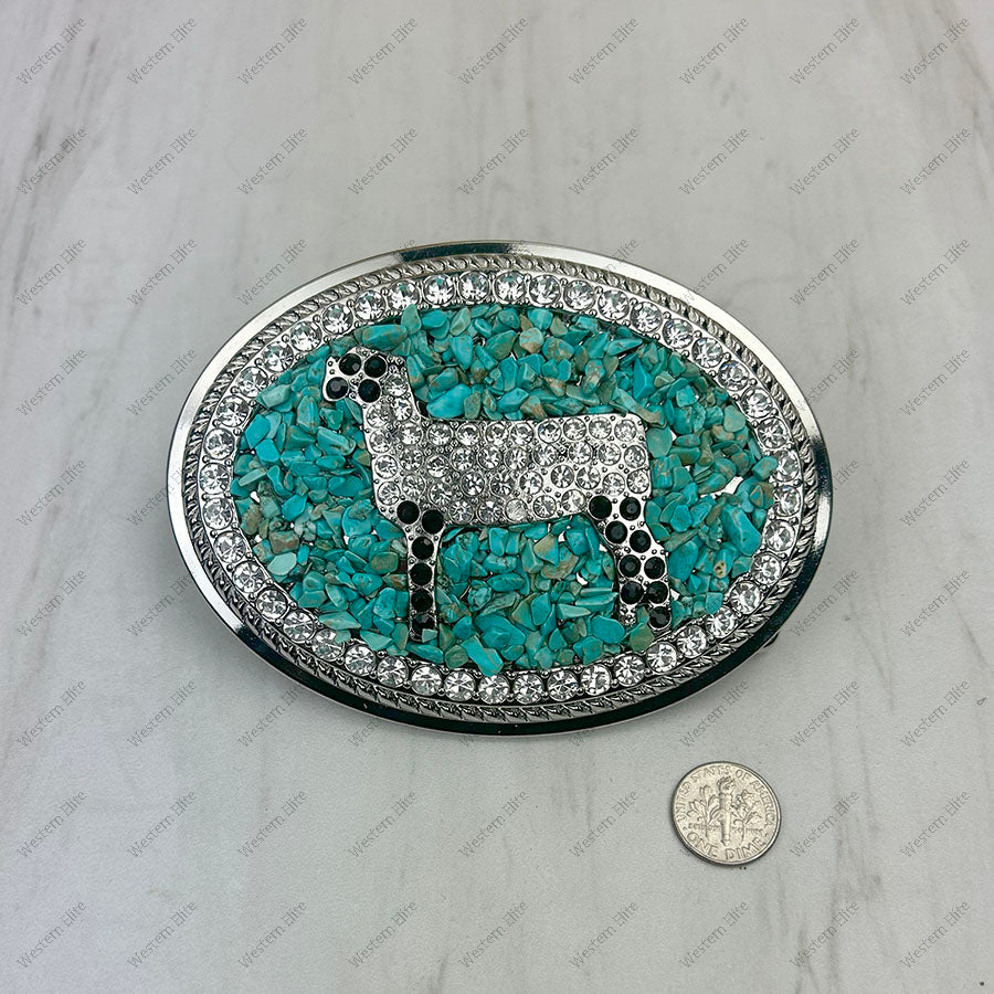 Silver metal with blue turquoise stone chips black and clear crystal sheep Belt buckle