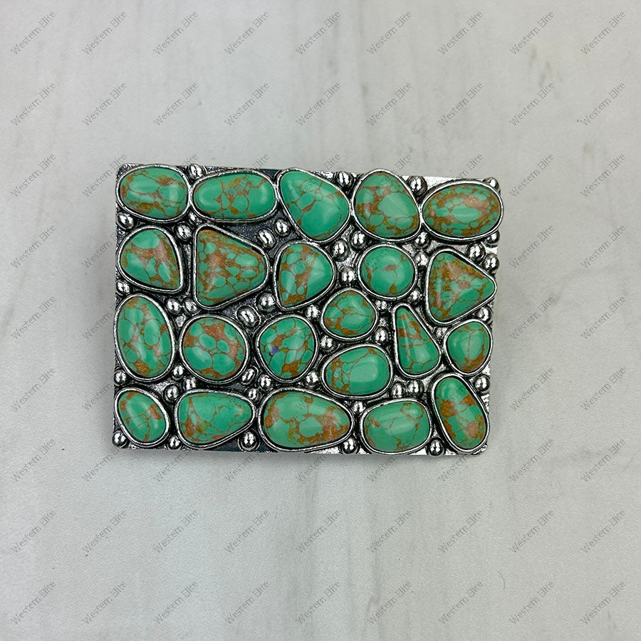BLT250120-07 Silver metal with green turquoise stone Rectangle Belt Buckle