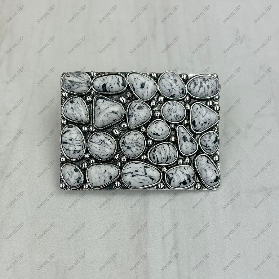 BLT250120-08 Silver metal with white turquoise stone Rectangle Belt Buckle