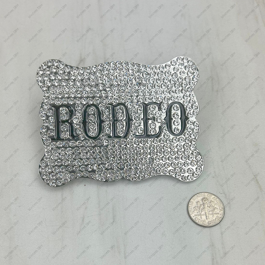 BUK250316-01 Large silver rectangle metal with crystals beads Belt Buckle