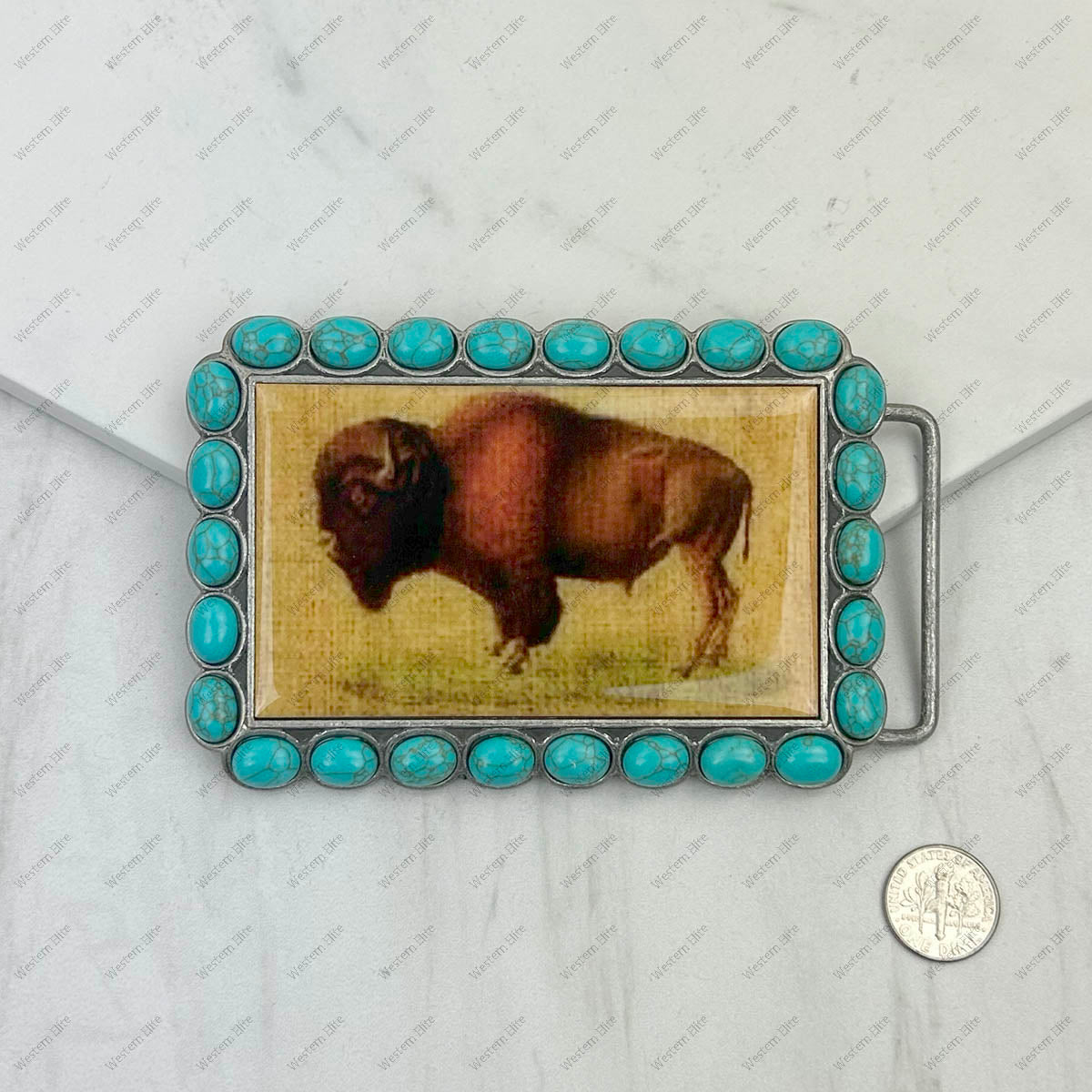 BUK240213-08 Triangle silver metal with blue turquoise stone and cowboy Belt buckle