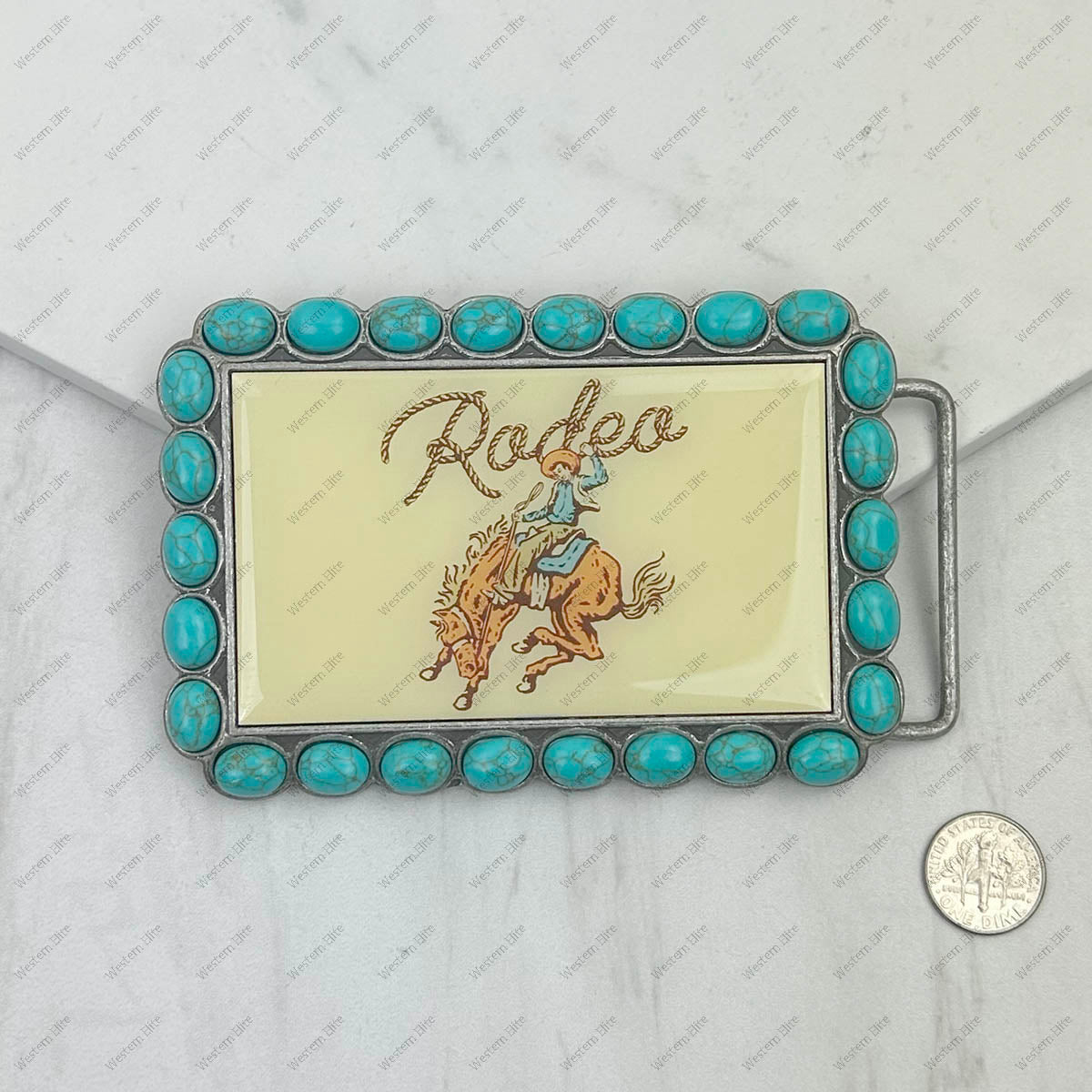 Triangle silver metal with Blue turquoise stone and cowboy Belt buckle