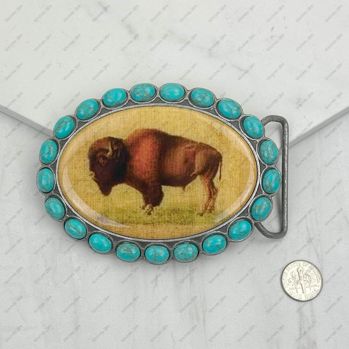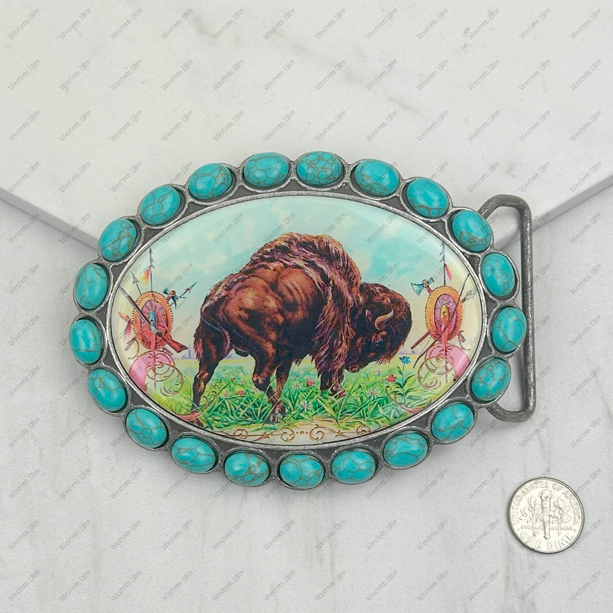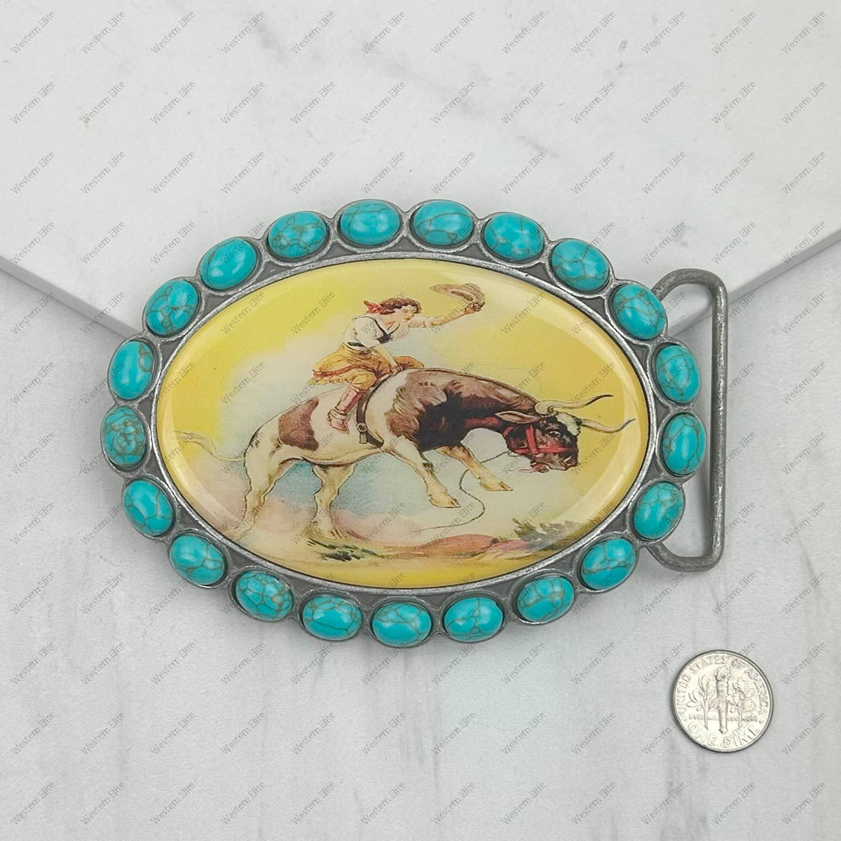 Oval silver metal with Blue turquoise stone and cowgirl Belt buckle