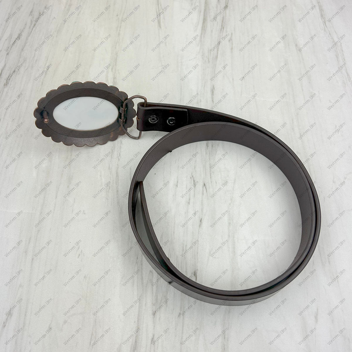 Oval copper metal with blue turquoise stone and cowgirl Belt buckle