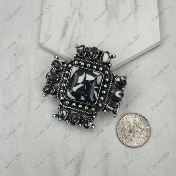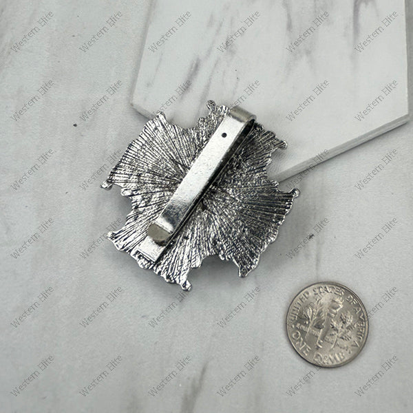Silver metal with black and white stone cross western slider