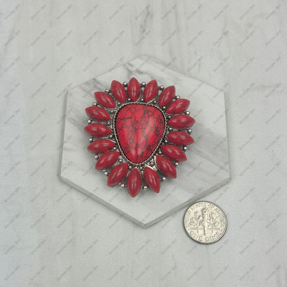 WRS240615-41 Silver metal with red turquoise stone western rag slide