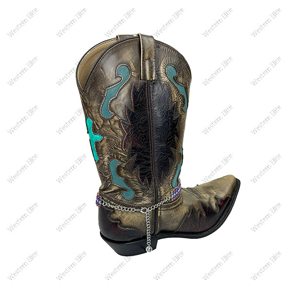 BOT260425-05 Silver metal with flag color crystal beads Boot chain