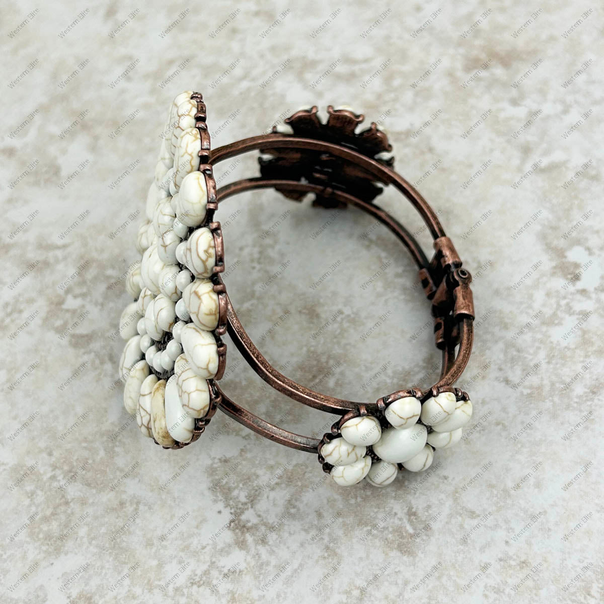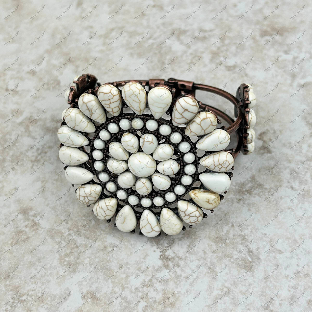 BR211230-01-WHITE-COOPER Cooper with White stone Concho Cuff Bracelet