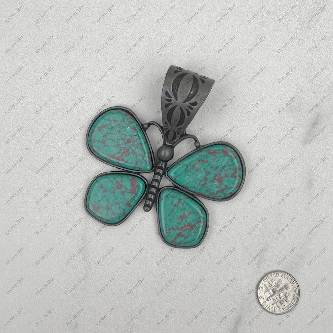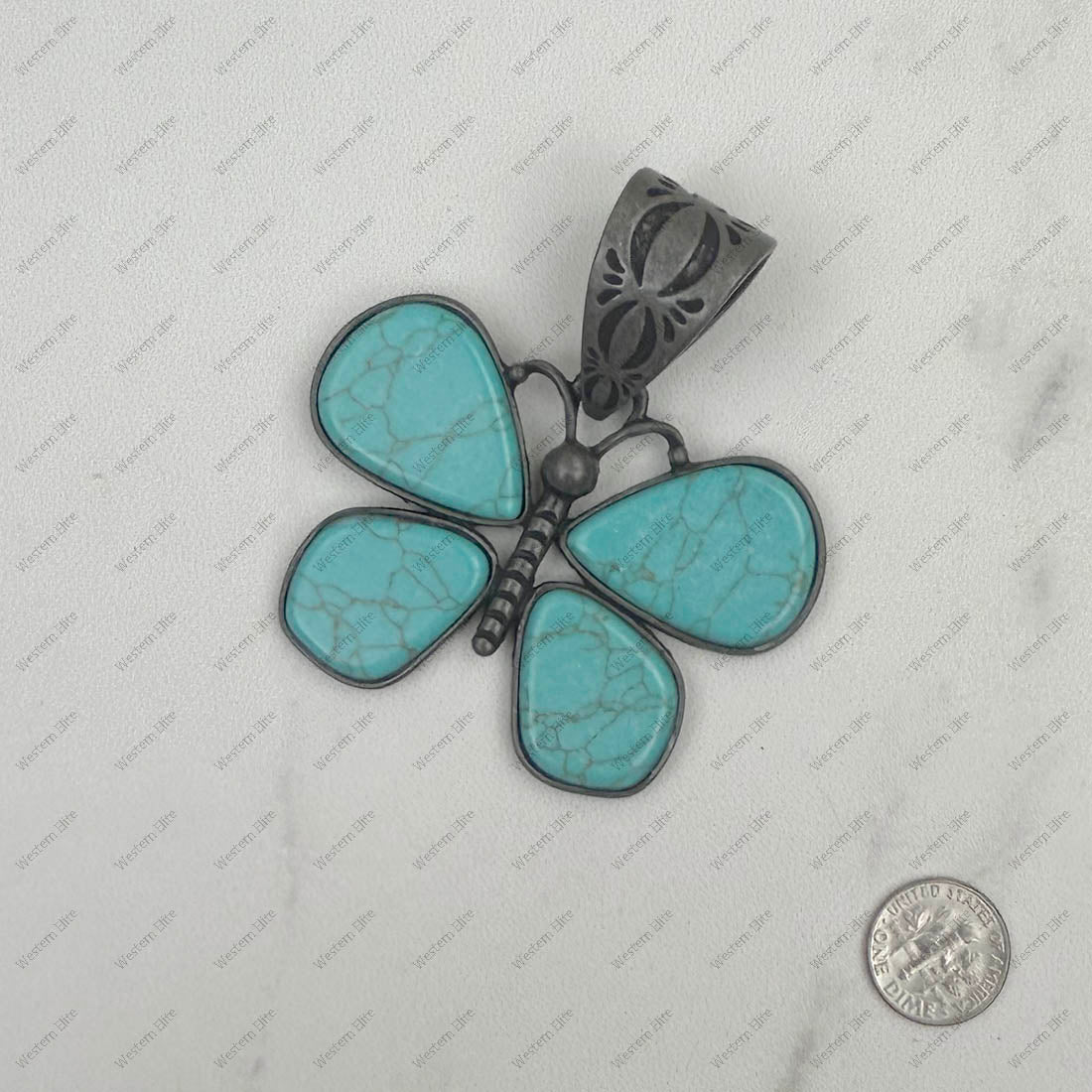 Silver with blue turquoise stone butterfly pendant
