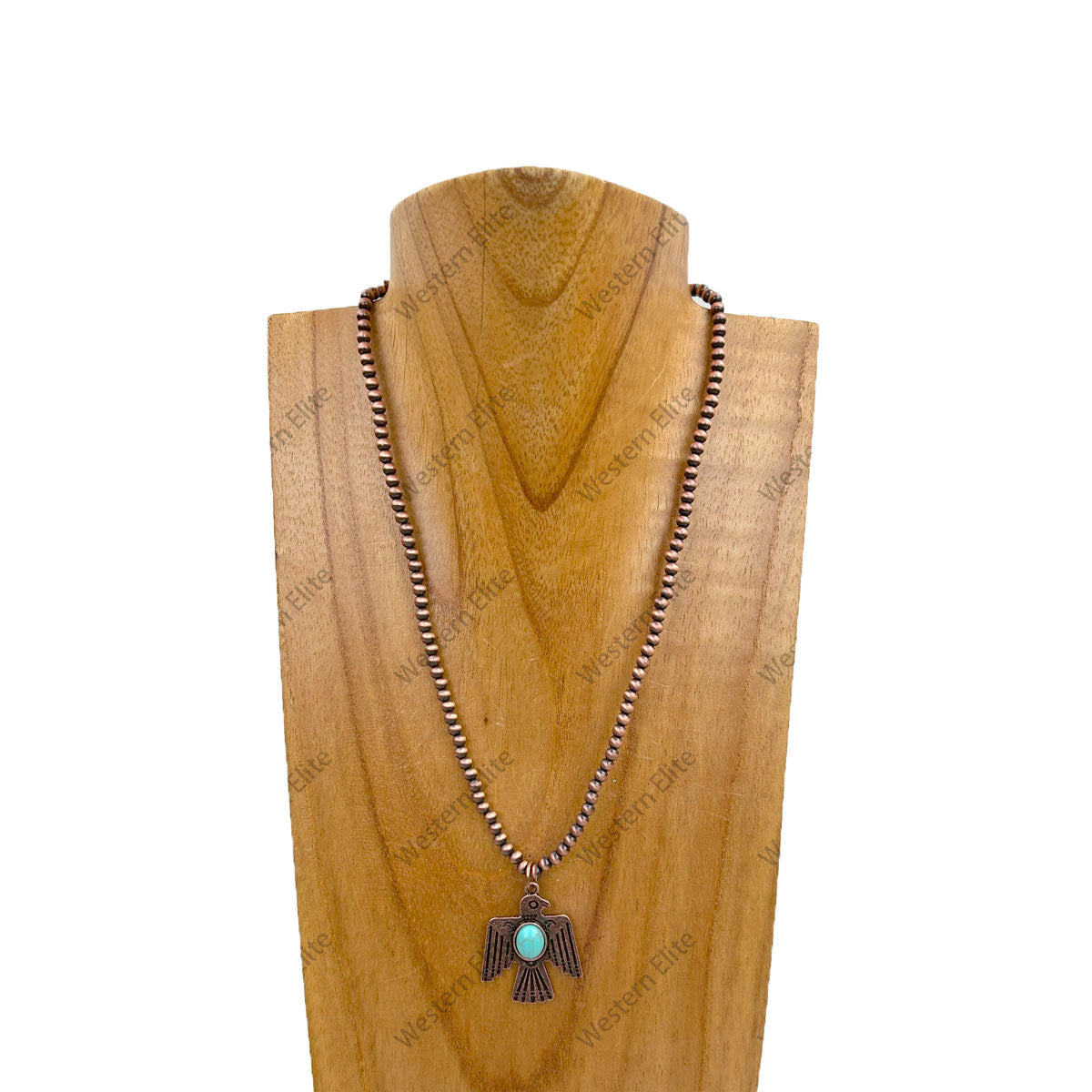 NKZ030524-40 17 Inches copper Navajo pearl beads with copper metal eagle Necklace